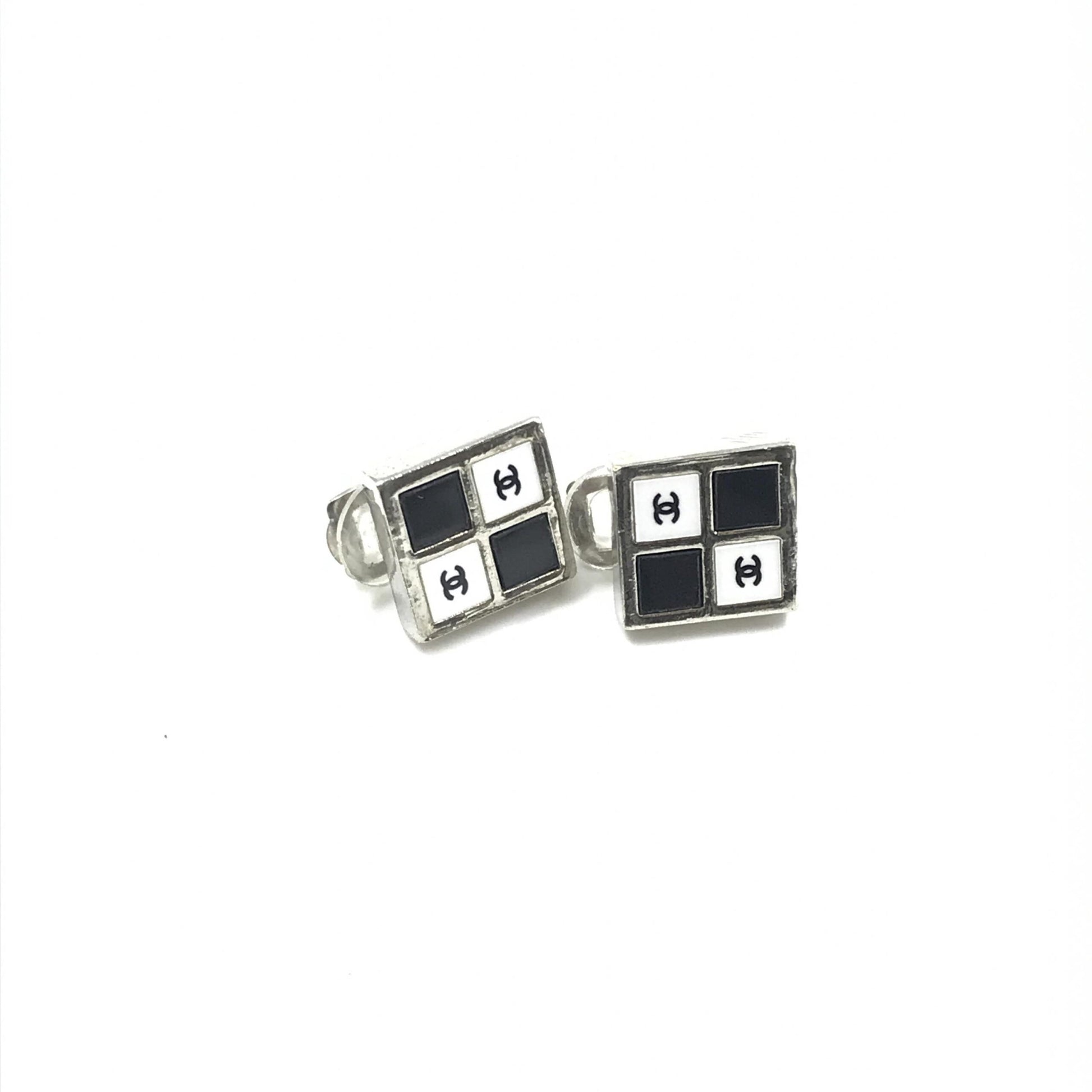 Crafted with meticulous attention to detail, these earrings feature the classic Coco Mark motif, a symbol of luxury and style. The interplay of black and white against the shimmering silver creates a versatile accessory that complements any ensemble, from casual chic to evening glamour.