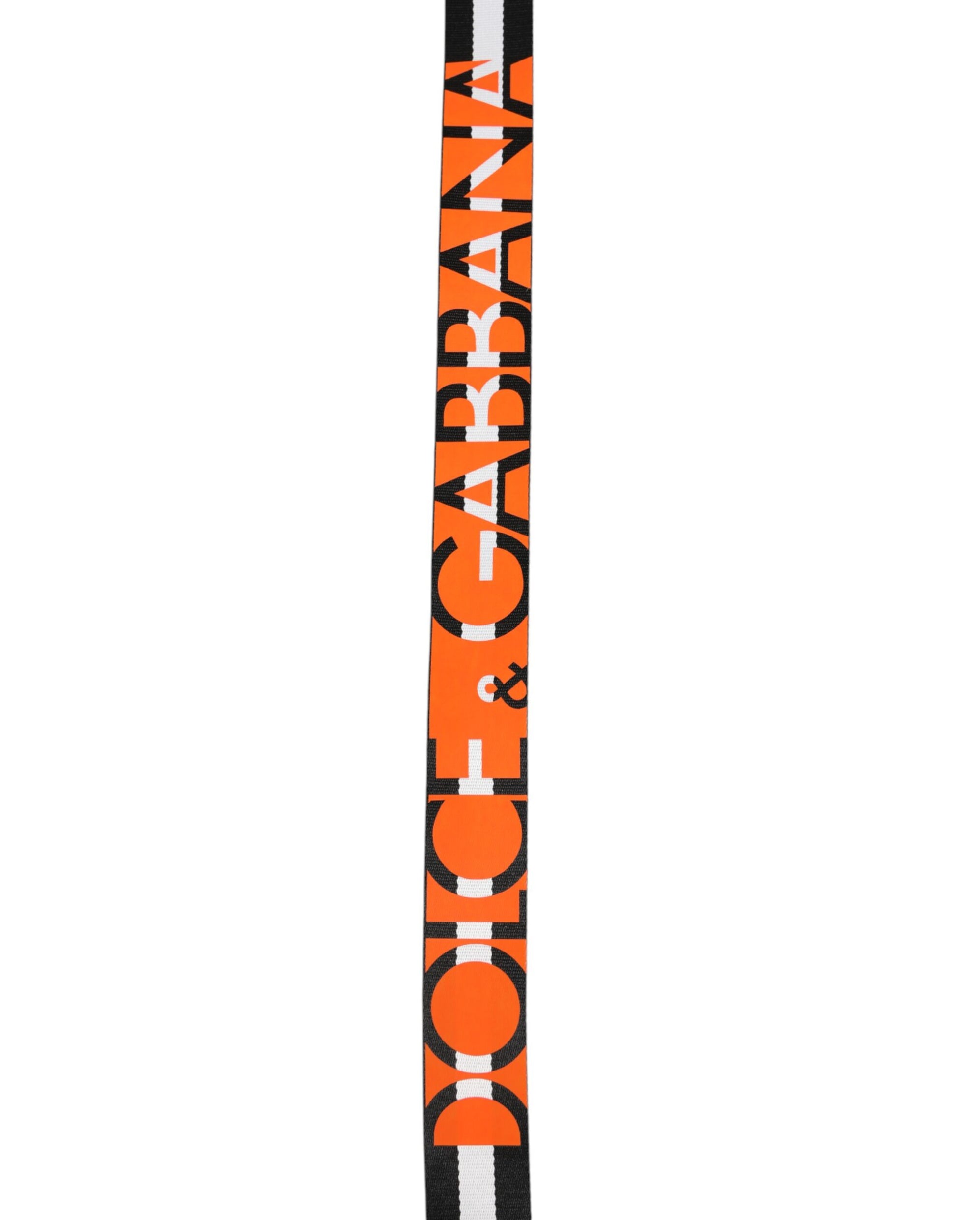 Wunderschöner, brandneuer, 100 % authentischer Dolce & Gabbana-Gürtel mit auffälligem Streifendesign und markantem Logodetail. Hergestellt in Italien, vereint er luxuriöse Handwerkskunst mit herausragendem Stil. Modell: Arbeitsgürtel Material: 95 % Nylon, 5 % Kalbsleder Int.: 95 % NY + 0,5 % Kalb Farbe: Schwarz-weiß gestreift mit orangefarbenem Logo-Aufdruck Hardware: Silberfarbene Metallschnalle Logodetails Hergestellt in Italien Größe: 100 cm / 40 Zoll Breite: 3cm