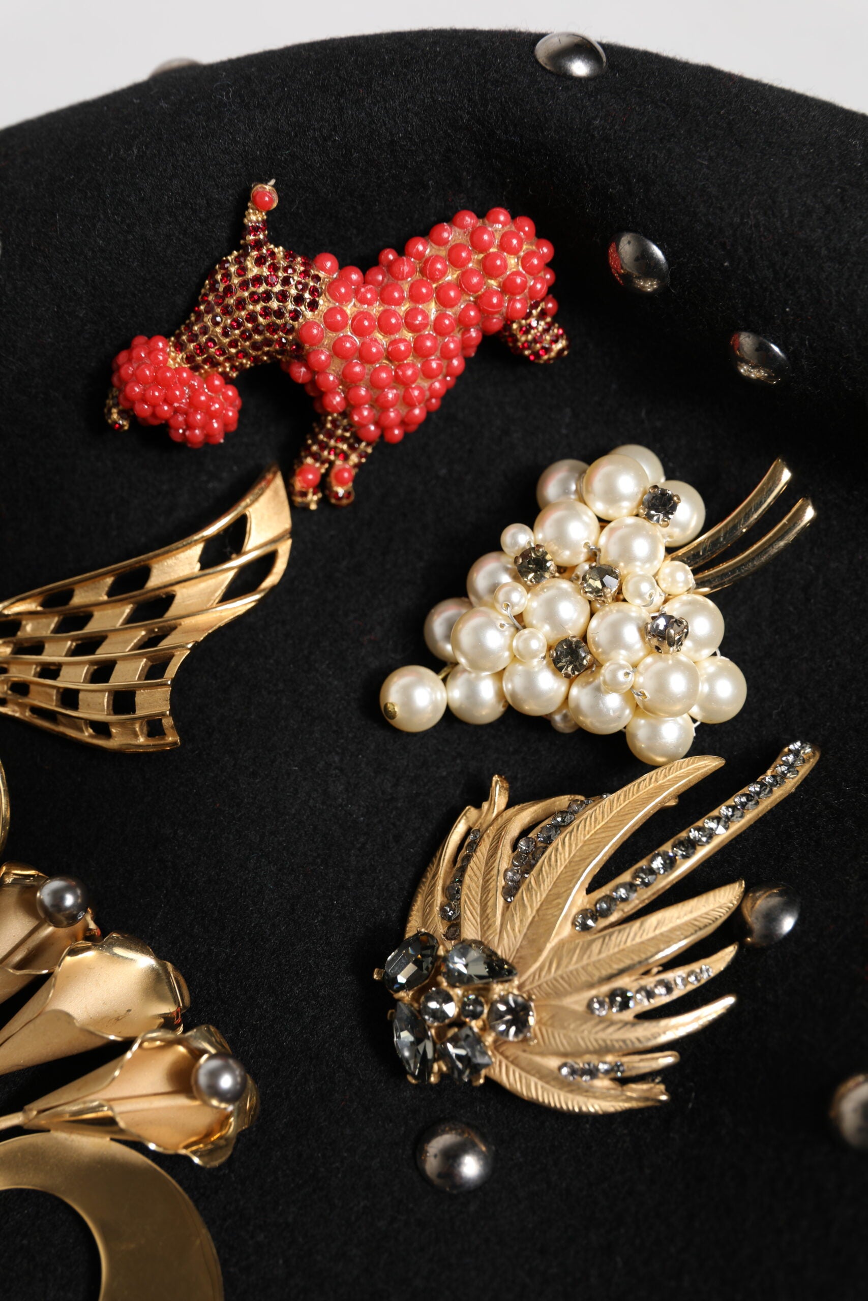 قبعة نسائية رائعة جديدة تمامًا، أصلية 100% من دولتشي آند غابانا، مزينة بالكريستال واللؤلؤ وتفاصيل معدنية. نموذج: قبعة نسائية اللون: أسود المواد: 100% صوف البطانة: 100% حرير تفاصيل الشعار صنع في إيطاليا حصري للغاية وفريد من نوعه