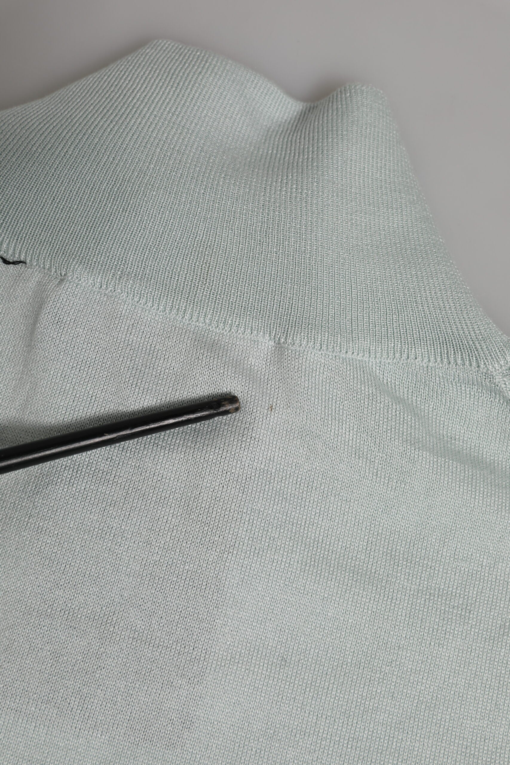 Der Pullover ist aus weichem, grauem Stoff gefertigt und sorgt für einen bequemen und dennoch edlen Look. Er verfügt über einen klassischen Rollkragen, 3/4-Ärmel und eine stromlinienförmige Silhouette, wodurch er sich perfekt zum Übereinandertragen oder allein tragen lässt und so mühelose Eleganz im Alltag verleiht.