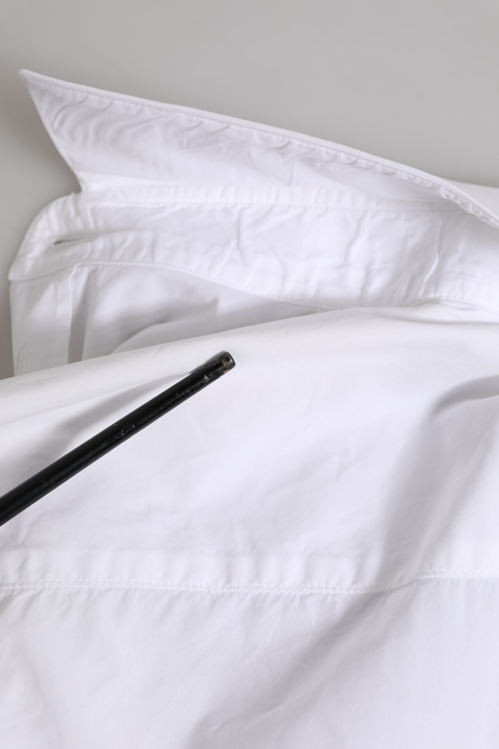 قميص دولتشي آند غابانا رائع وجديد كليًا، أصلي ١٠٠٪. يتميز هذا الموديل برقبة كلاسيكية وأكمام طويلة وأزرار للإغلاق. نموذج: قميص ذهبي المقاس: نحيف اللون: أبيض المواد: 100% قطن إغلاق الزر تفاصيل الشعار صنع في إيطاليا