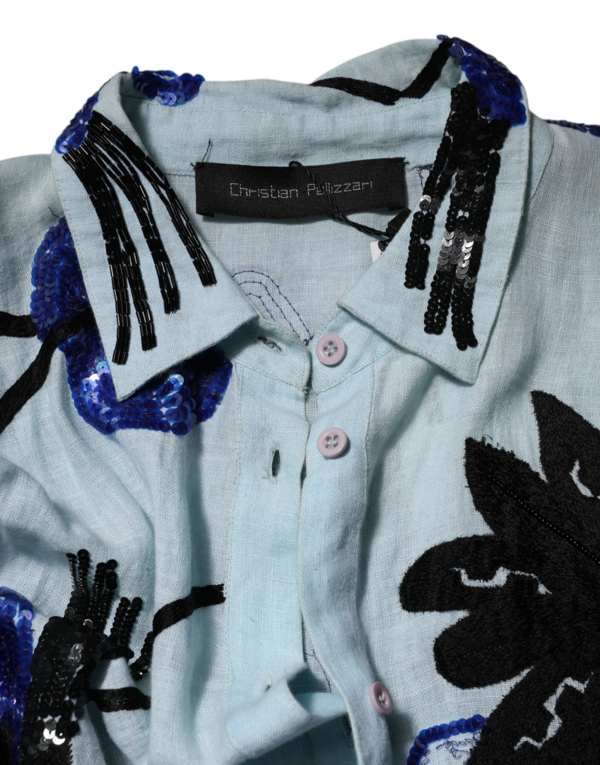 Christian Pellizzari Blue Sequin Embellished Shirt Maxi Dress