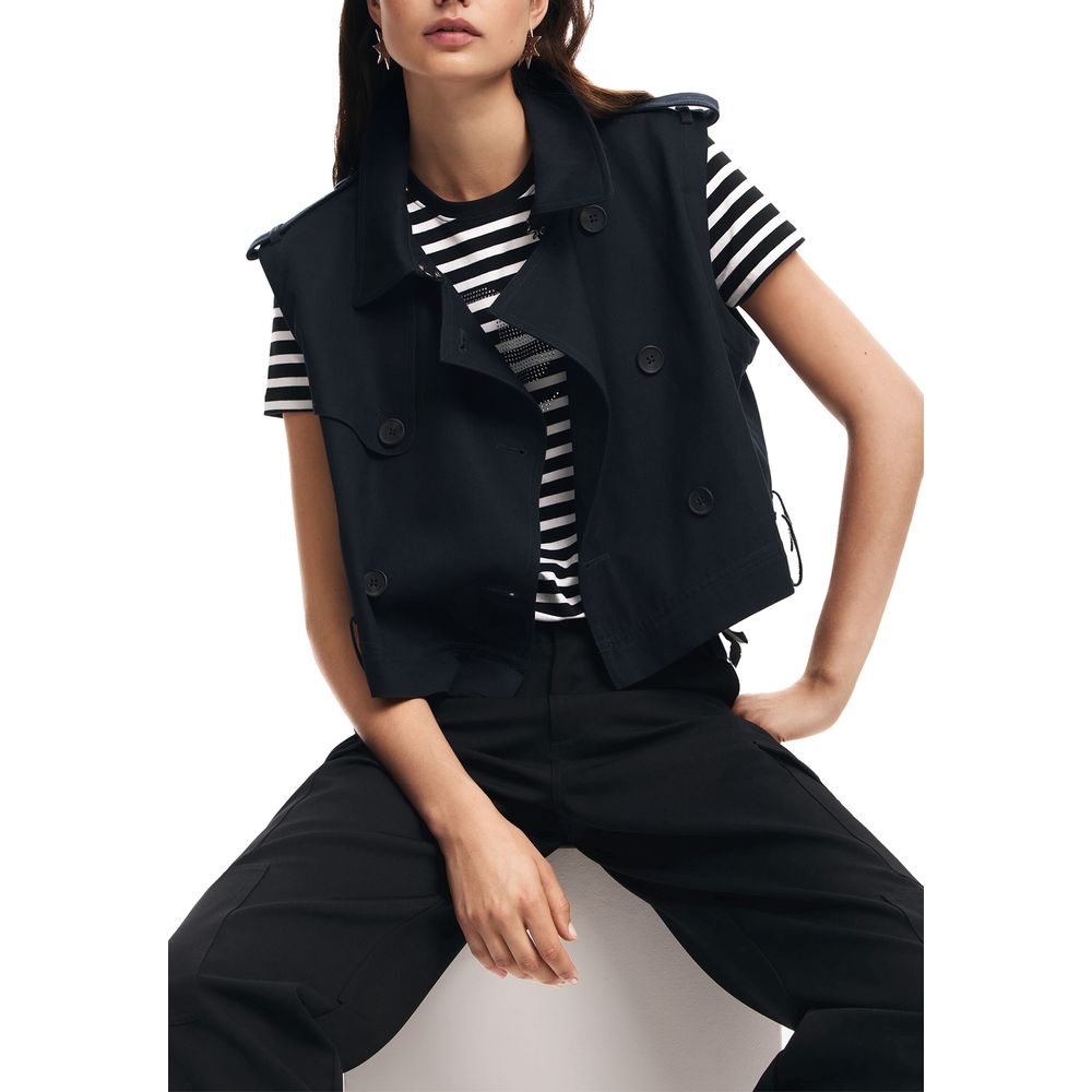 The Desigual CHAQ_VILMA 24WWEW80 women’s parka is an iconic piece that combines contemporary style with functionality. Made from 100% cotton, it ensures a comfortable and breathable fit, perfect for transitional seasons. The long, structured design features a double-breasted closure, shoulder epaulettes, and an adjustable waist belt for a refined, feminine touch. Adjustable cuffs and spacious side pockets add practicality and versatility, while the modern cut enhances the silhouette. Ideal for pairing with both casual and formal outfits, this parka is the perfect choice for those seeking a distinctive, high-quality garment from Desigual.