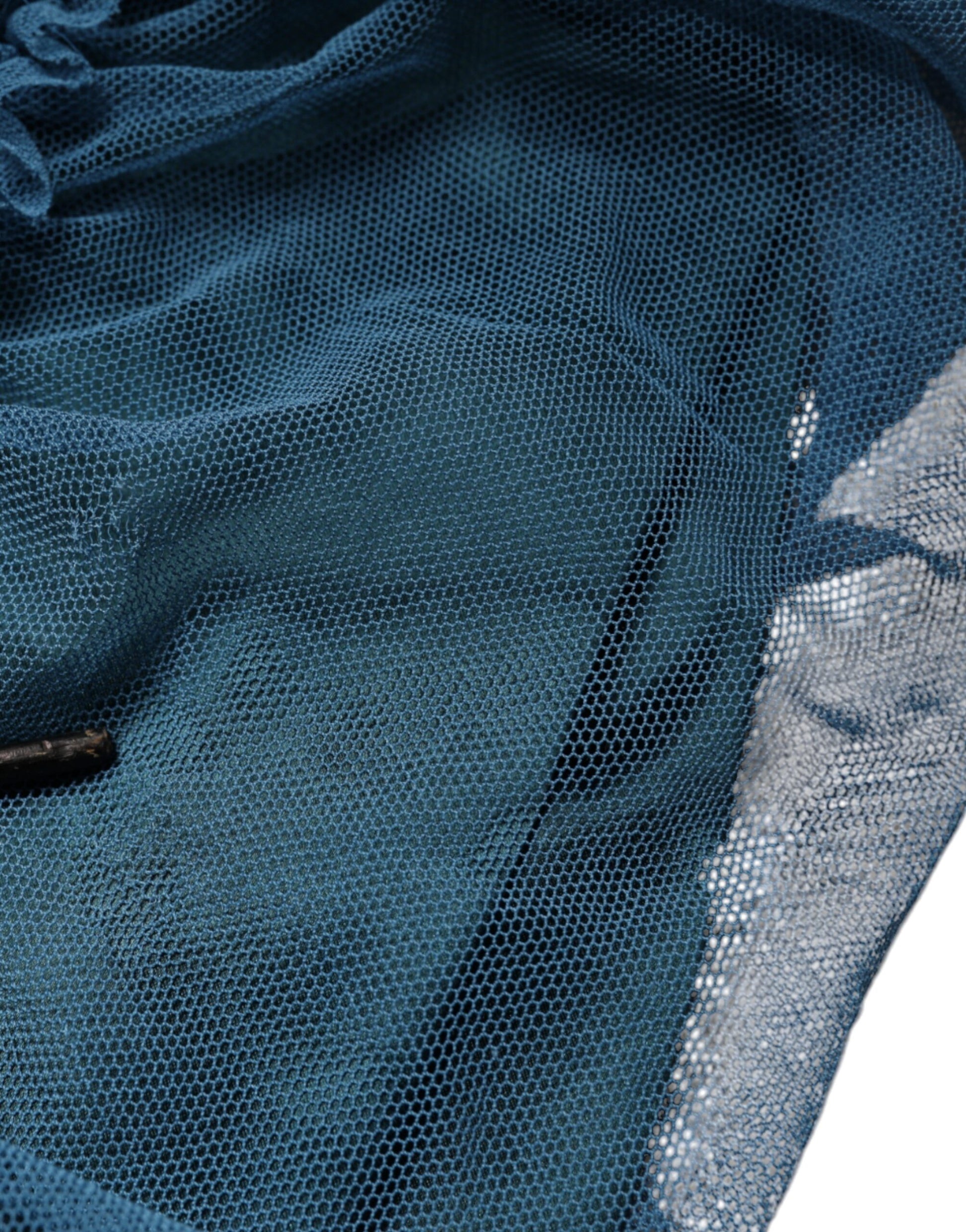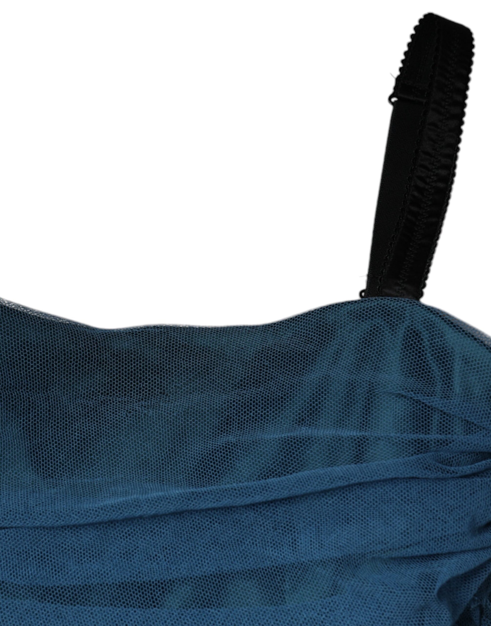 Dolce & Gabbana Blue Mesh Trim Ruched Tulle Sheath Dress
