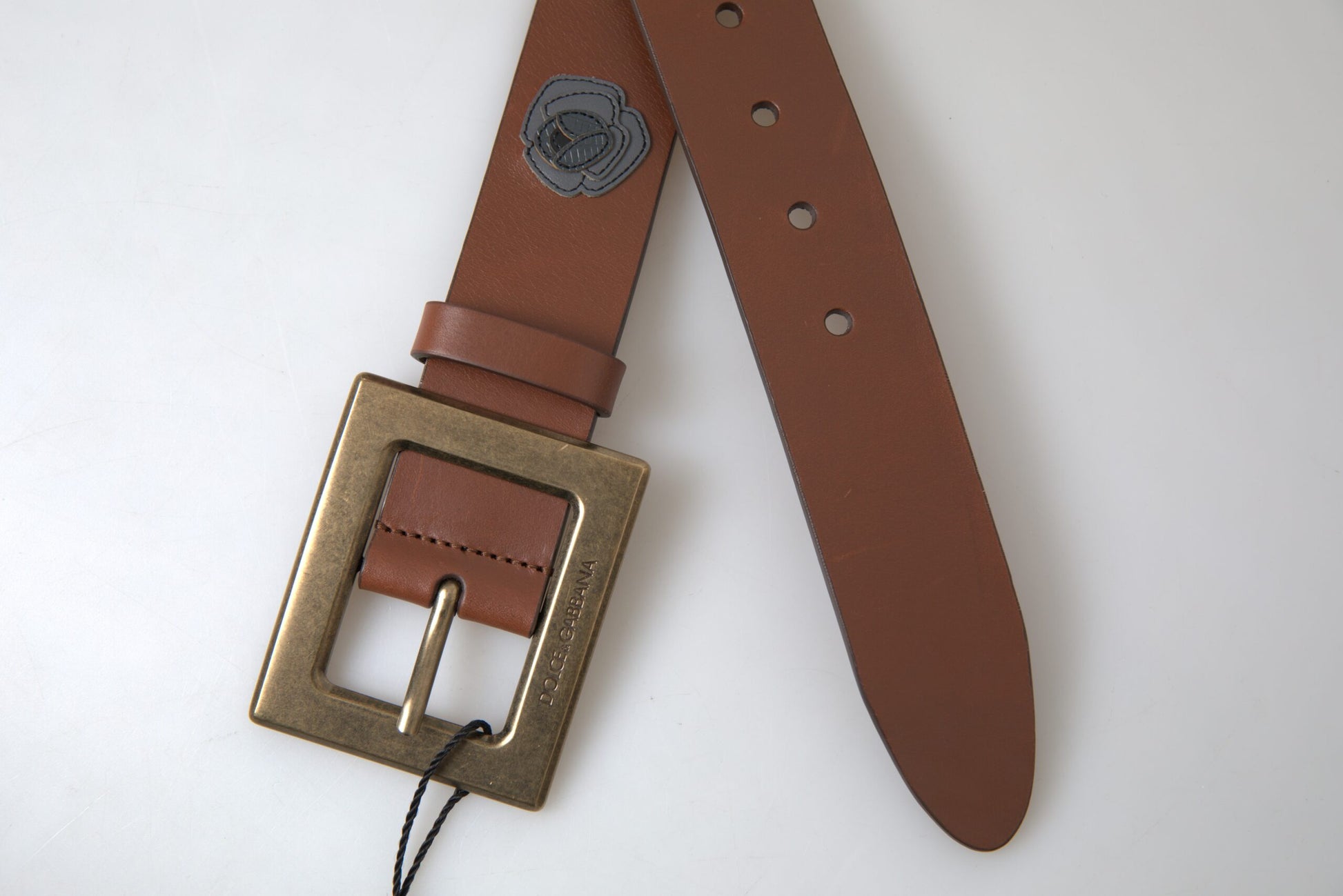 Dolce & Gabbana Brown Leather #DGFAMLY Square Buckle Belt