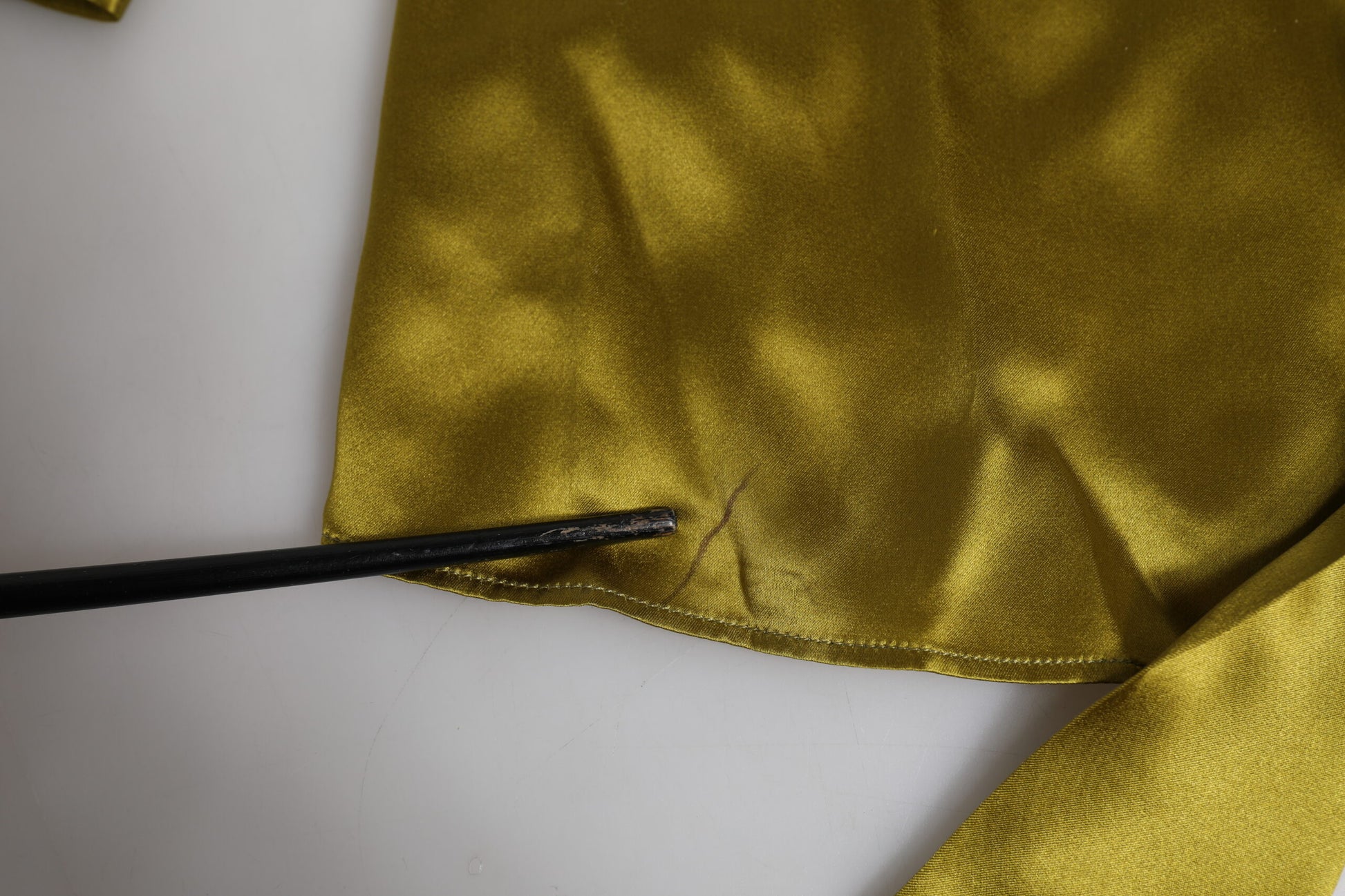 Dolce & Gabbana Green Ascot Collar Long Sleeves Blouse Top