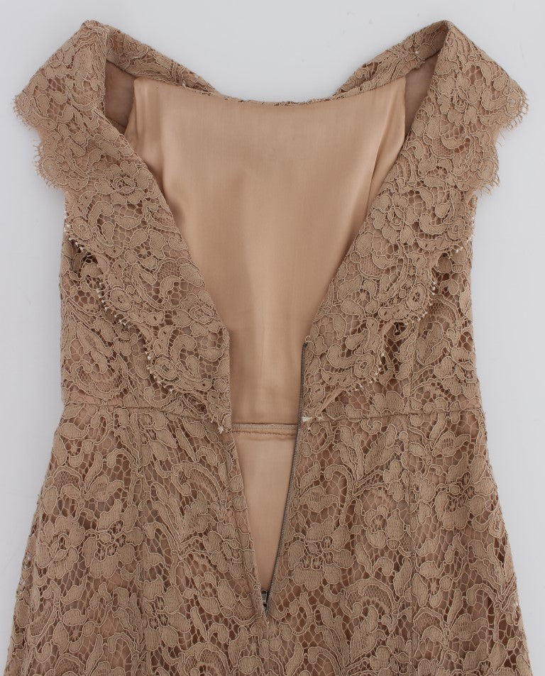 Dolce & Gabbana Pink Floral Lace Full Length Sheath Dress