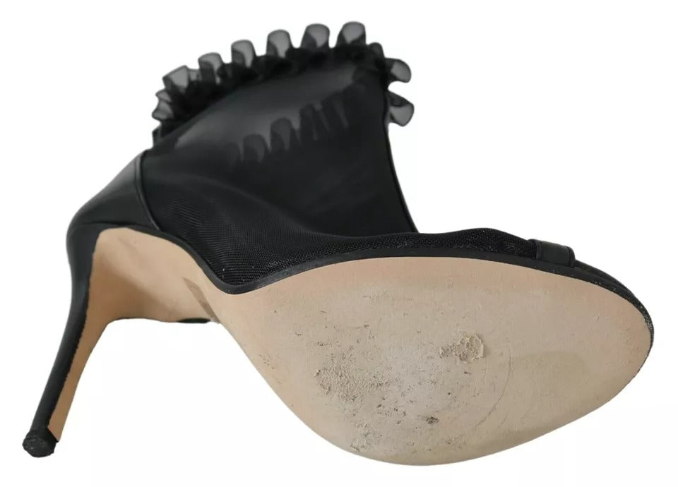 Mangano Black Leather Mesh Stiletto High Heels Peep Toe Boots Shoes