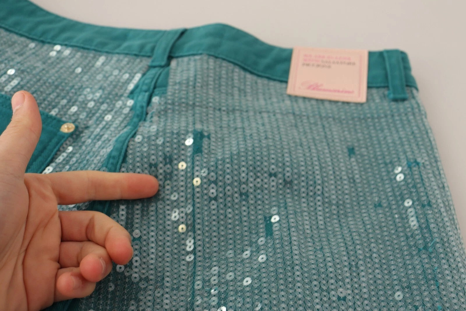 Wunderschöne, brandneue, 100 % authentische, mit Pailletten besetzte, verkürzte Hose mit niedriger Taille von BLUMARINE mit Etikett.