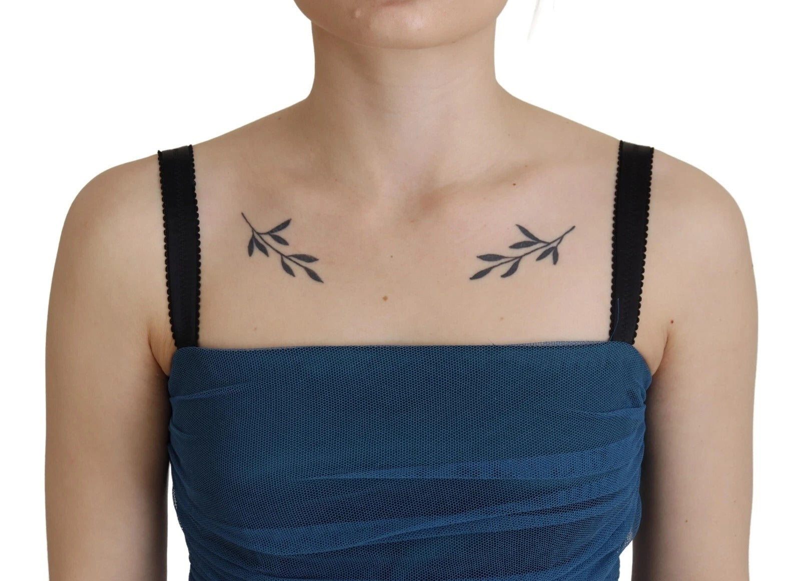 Wunderschönes, brandneues, 100 % authentisches, ärmelloses, figurbetontes Midikleid aus gerüschtem Tüll in Blau von Dolce & Gabbana mit Etikett.