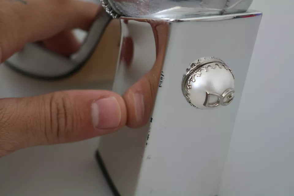 Dolce & Gabbana Silber Kristalle T-Riemen Sandalen Lederschuhe
