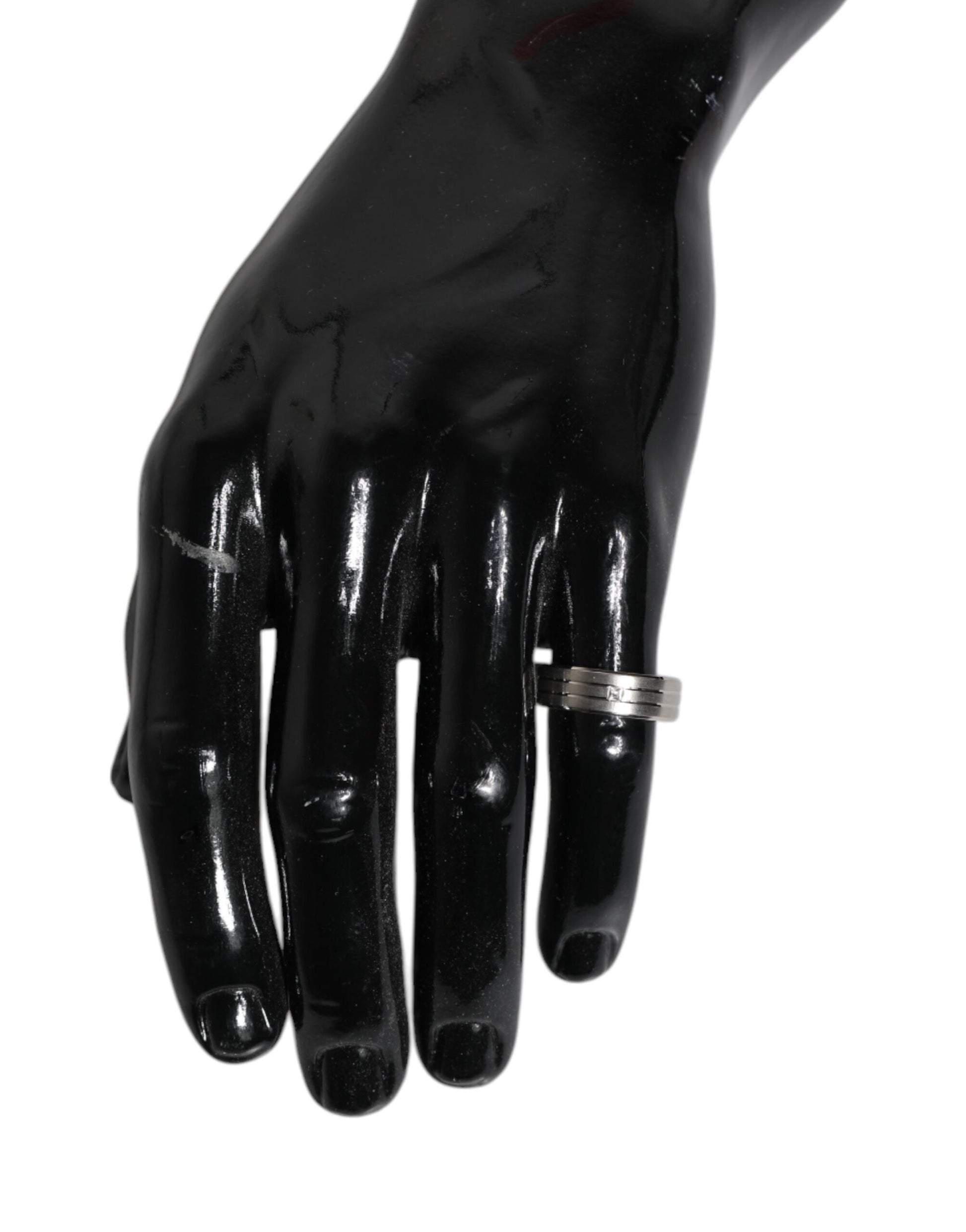 Dolce & Gabbana – Silberfarbener Messingring mit DG-Logo und klarem Kristall