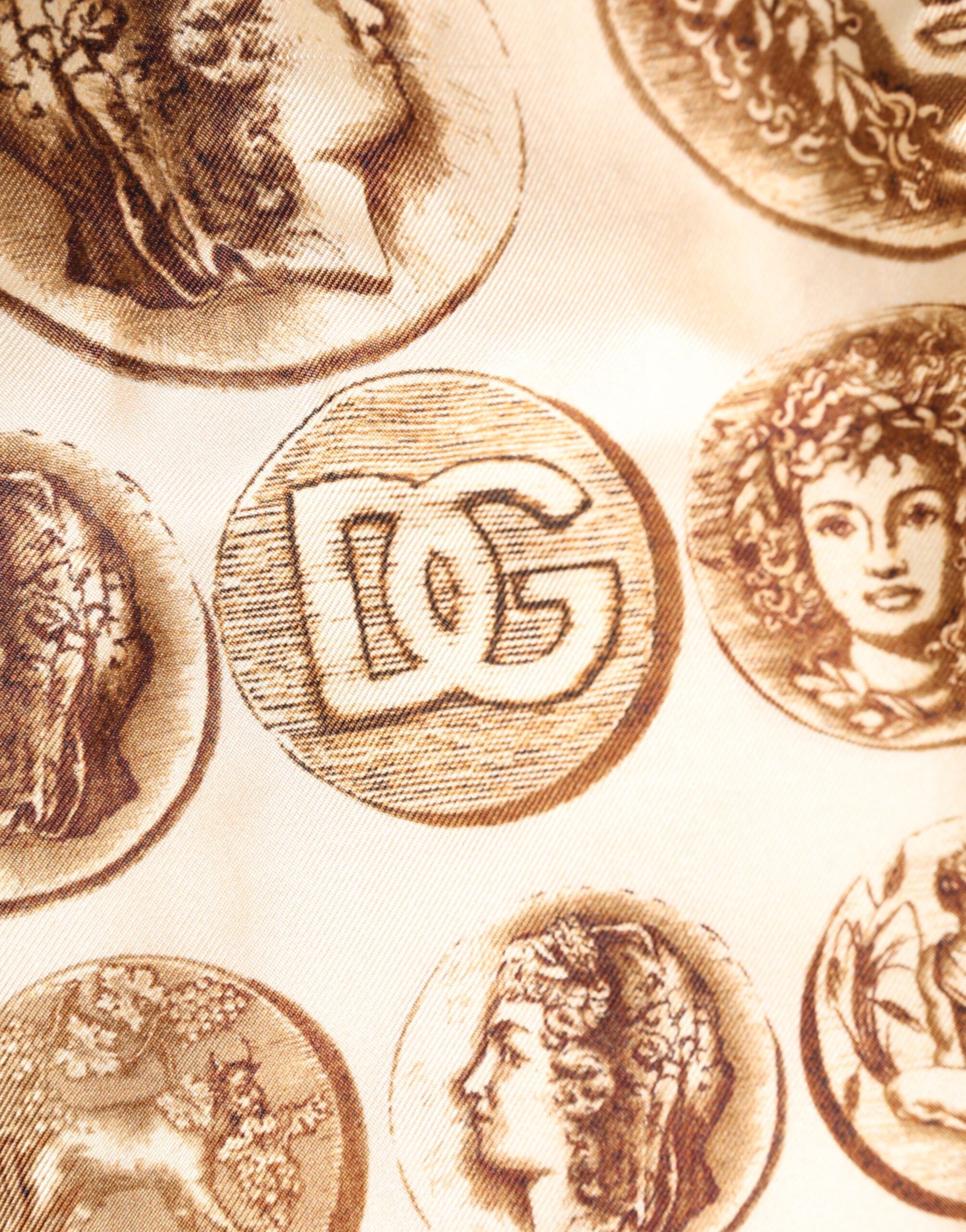 Hergestellt aus hochwertiger, leichter Seide mit antikem Münzdruck. Mit elastischem Bund und bequemer Passform. Perfekt zum Entspannen am Pool oder als Strandbekleidung.