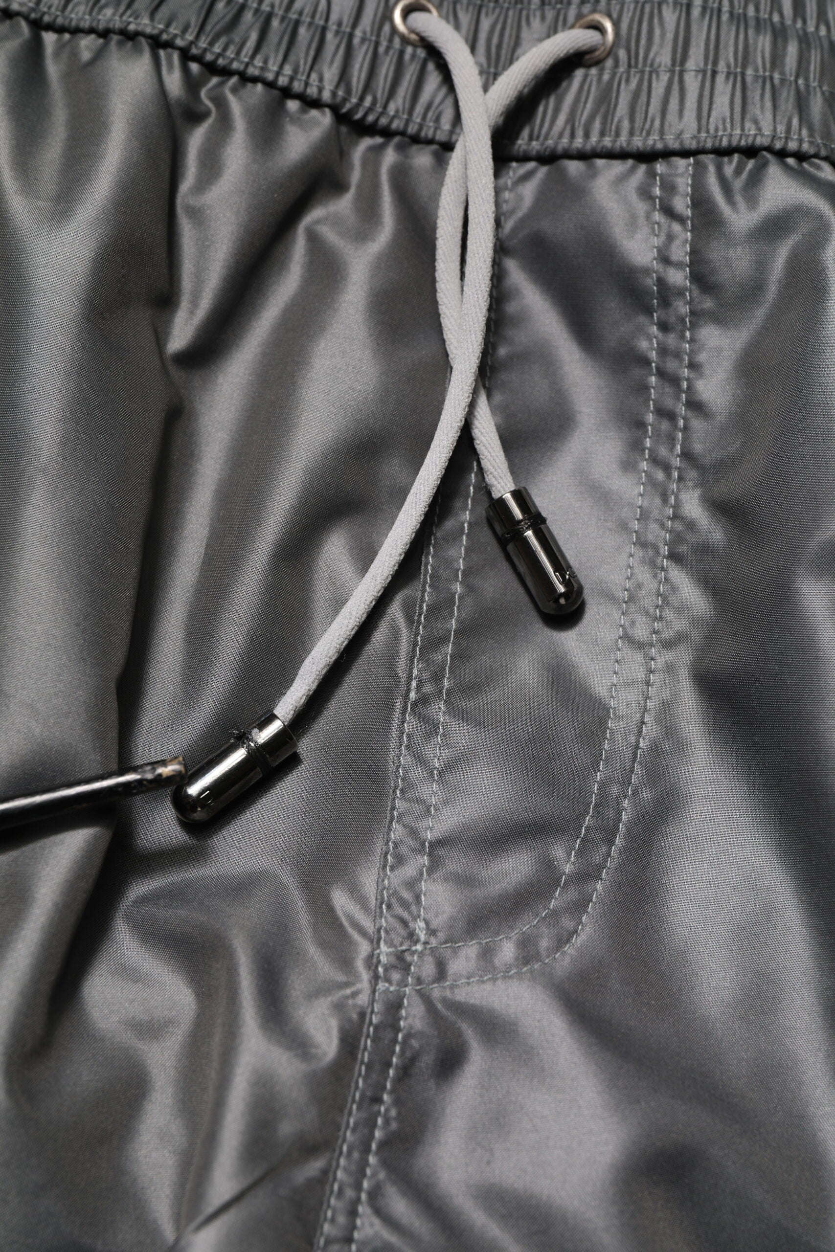 Wunderschöne, brandneue, 100 % authentische Bermudashorts von Dolce & Gabbana. Stil: Bermudashorts Farbe: Grau Material: 100% Polyester Passform: Normale Passform Zum Ziehen des Kordelzugverschlusses Logodetails Hergestellt in Italien Sehr exklusiv und hochwertig verarbeitet