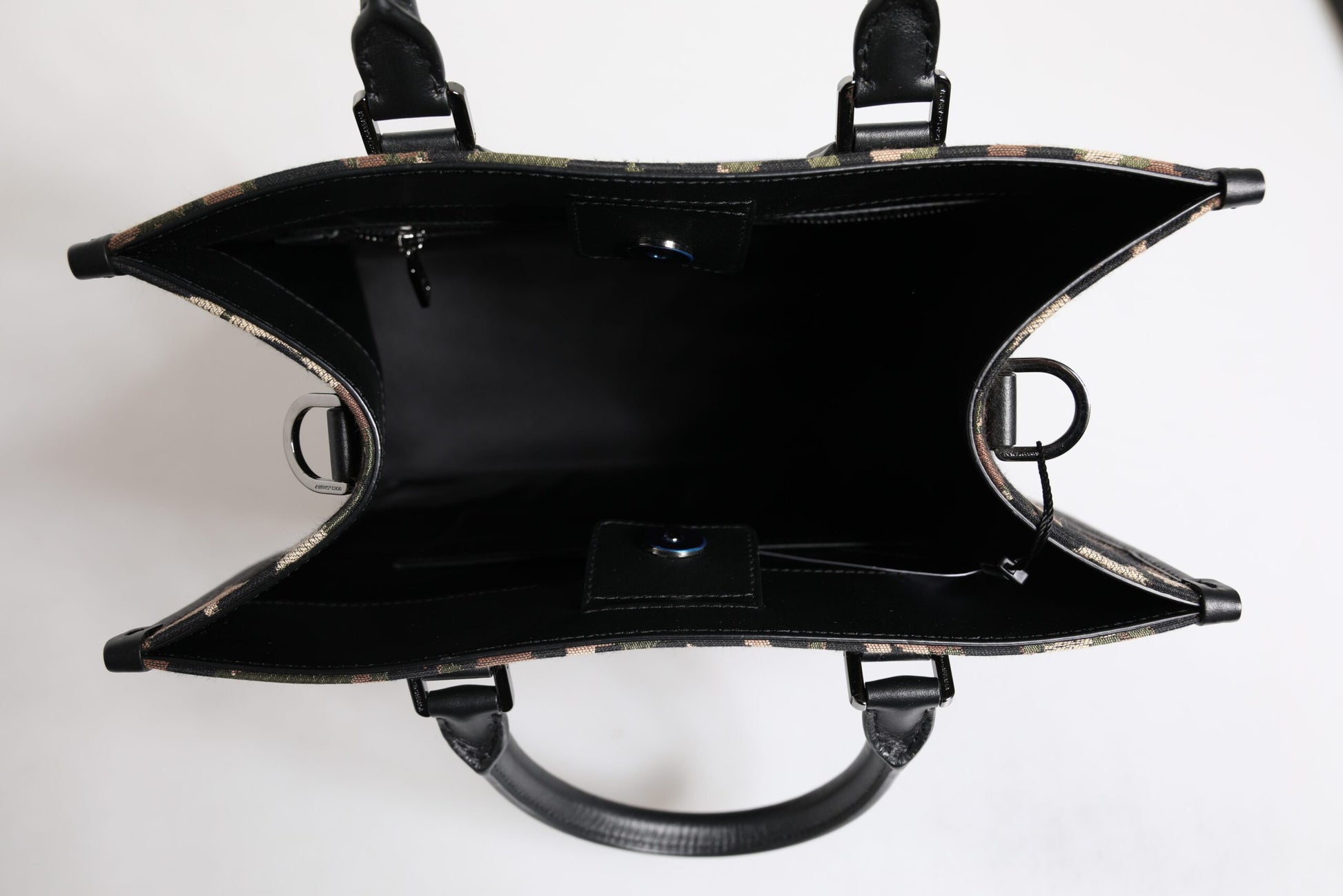 Absolut atemberaubende, 100 % authentische, brandneue braune Tragetasche von Dolce & Gabbana mit charakteristischem Leopardenmuster, runden Griffen oben mit gold- und silberfarbenen Nietendetails und einem Magnetverschluss oben.