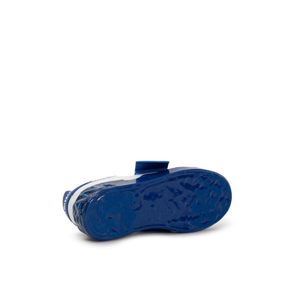 Dolce & Gabbana Low-Top-Sneaker. In Weiß und Blau, Schnürung vorne mit Mega-Riemen mit kontrastfarbenem Logo-Print und Schnürsenkeln, gummierte Laufsohle mit Gusseffekt. Logo-Tag auf der Zunge und Ton-in-Ton-Print auf der Rückseite