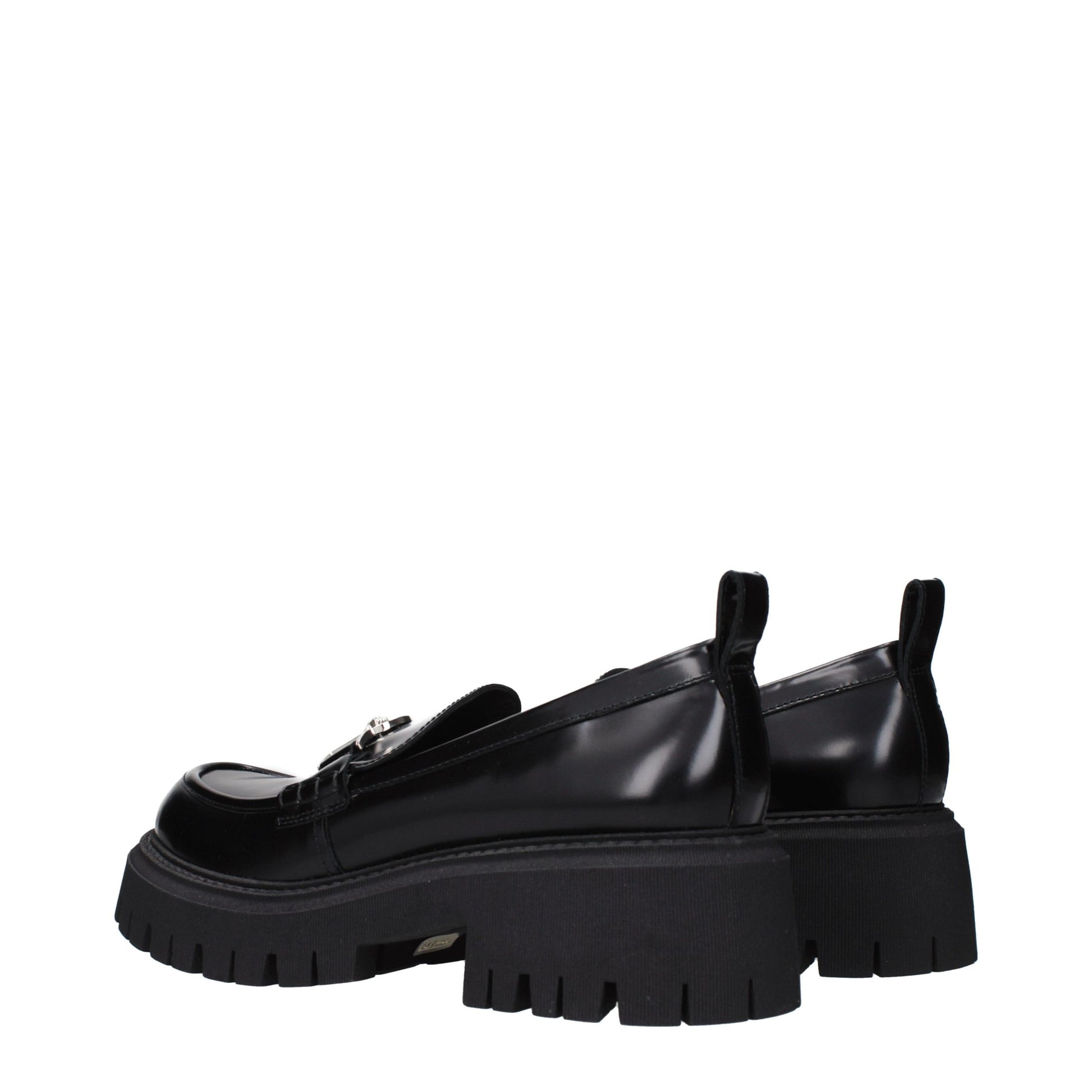 The product with MPN 10147361A086611B00P and code F86271 leather in black is a loafers designed by Versace. It has features like front detail.