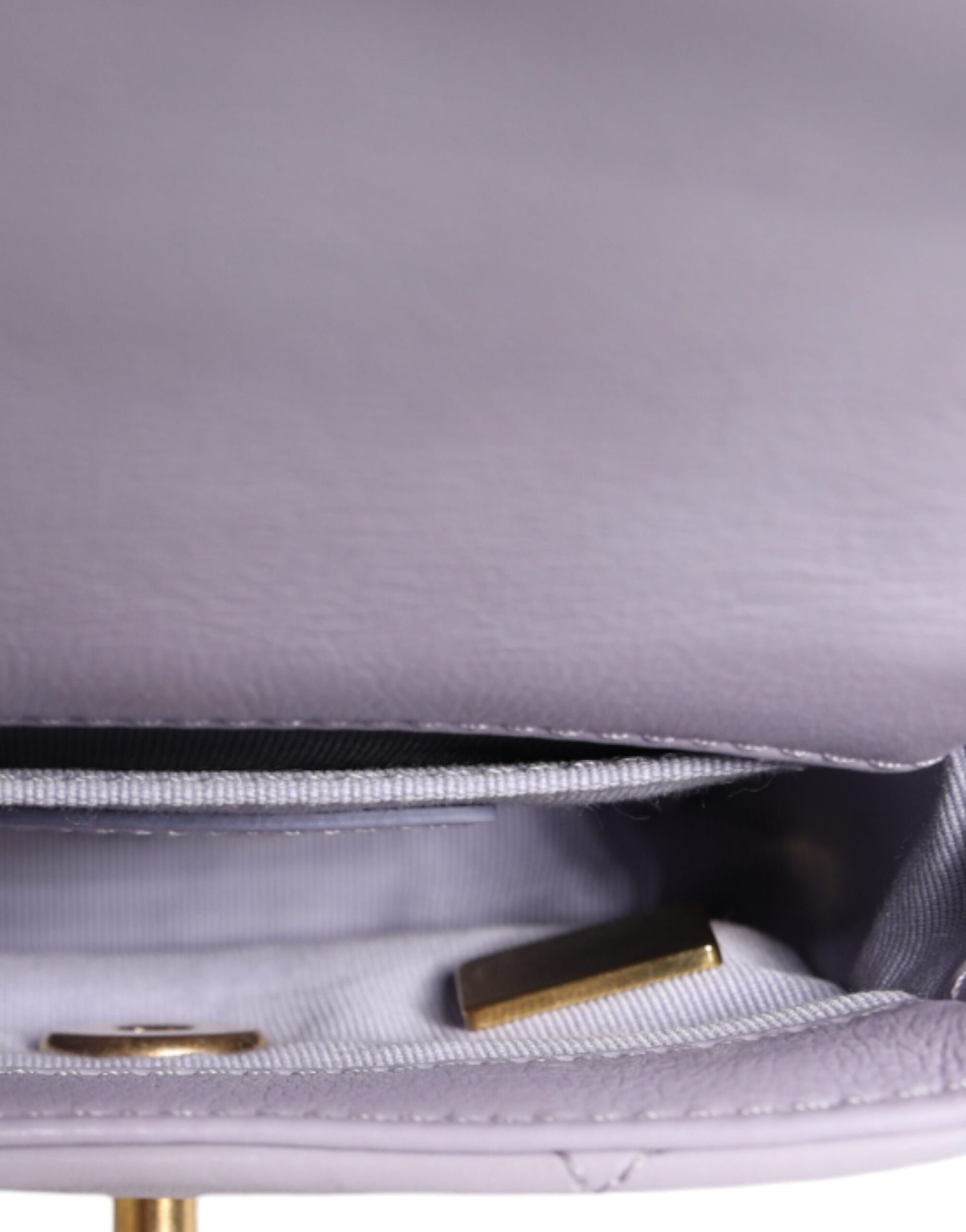 Diese Chanel Mini Framing Chain Bag besteht aus wunderschönem hellviolettem Kalbsleder.
