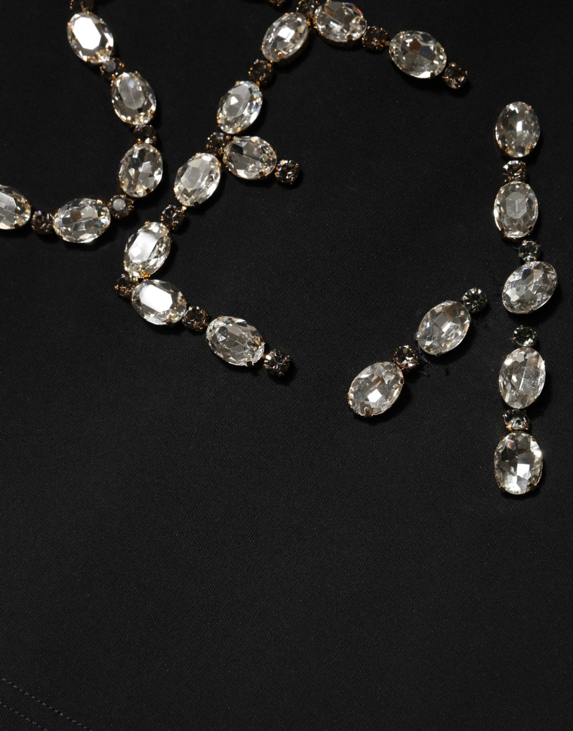 Dolce & Gabbana Black Jersey Lace Ruching Rhinestone Tank Top