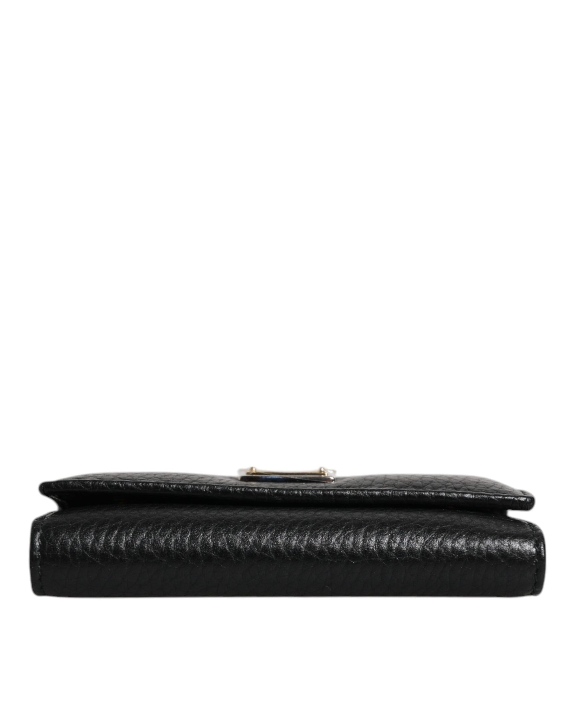 Dolce & Gabbana – Dreifach faltbarer Schlüsselanhänger mit Logo-Plakette aus schwarzem Leder und goldenem Metall