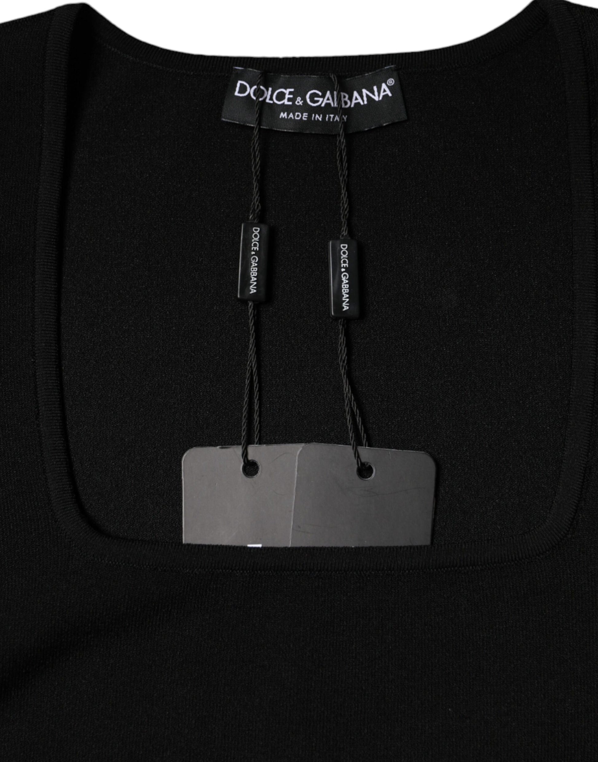 Dolce & Gabbana – Schwarze Bluse mit langen Ärmeln und quadratischem Ausschnitt
