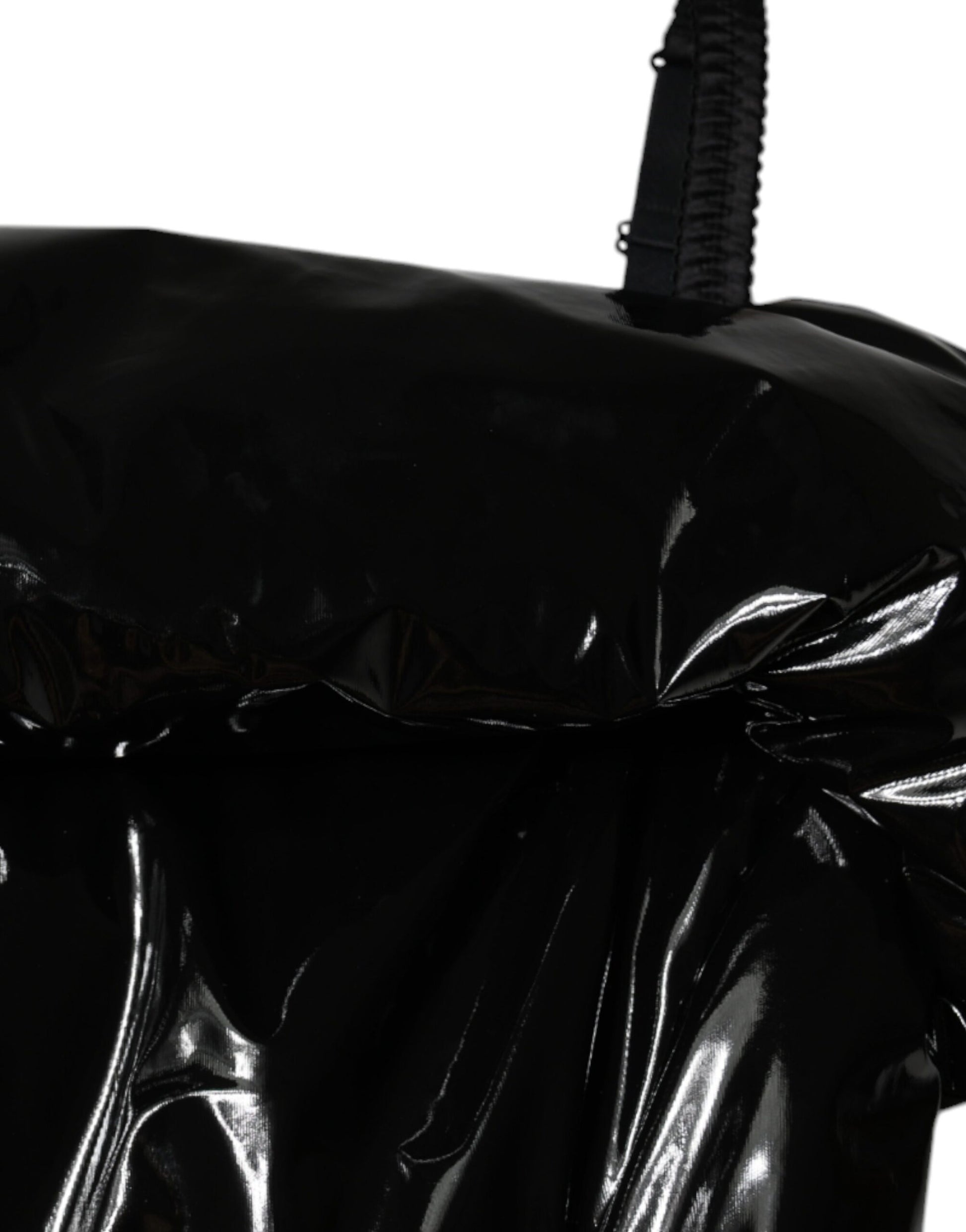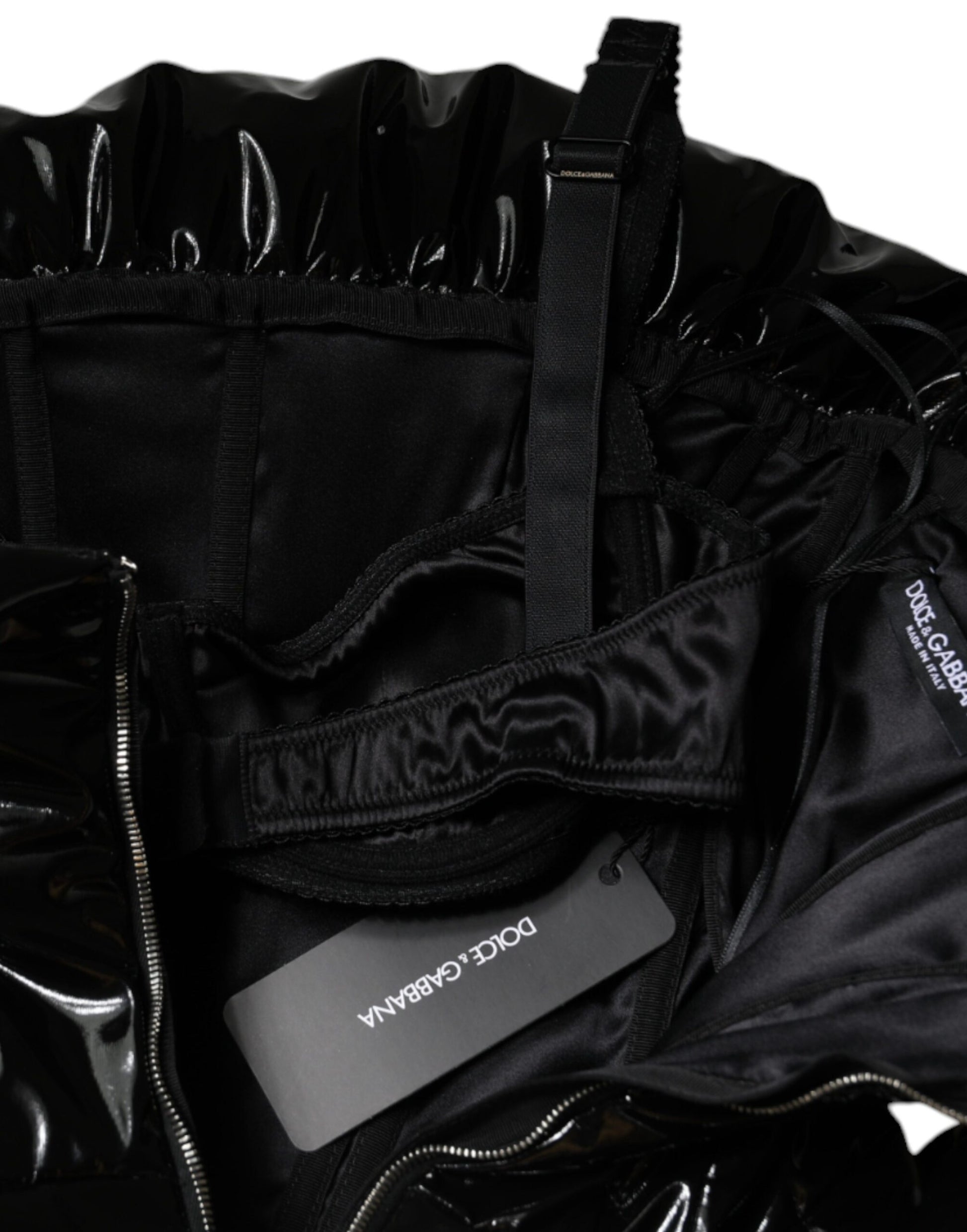 Dolce & Gabbana – Schwarzes, gerüschtes, beschichtetes Minikleid aus Polyester