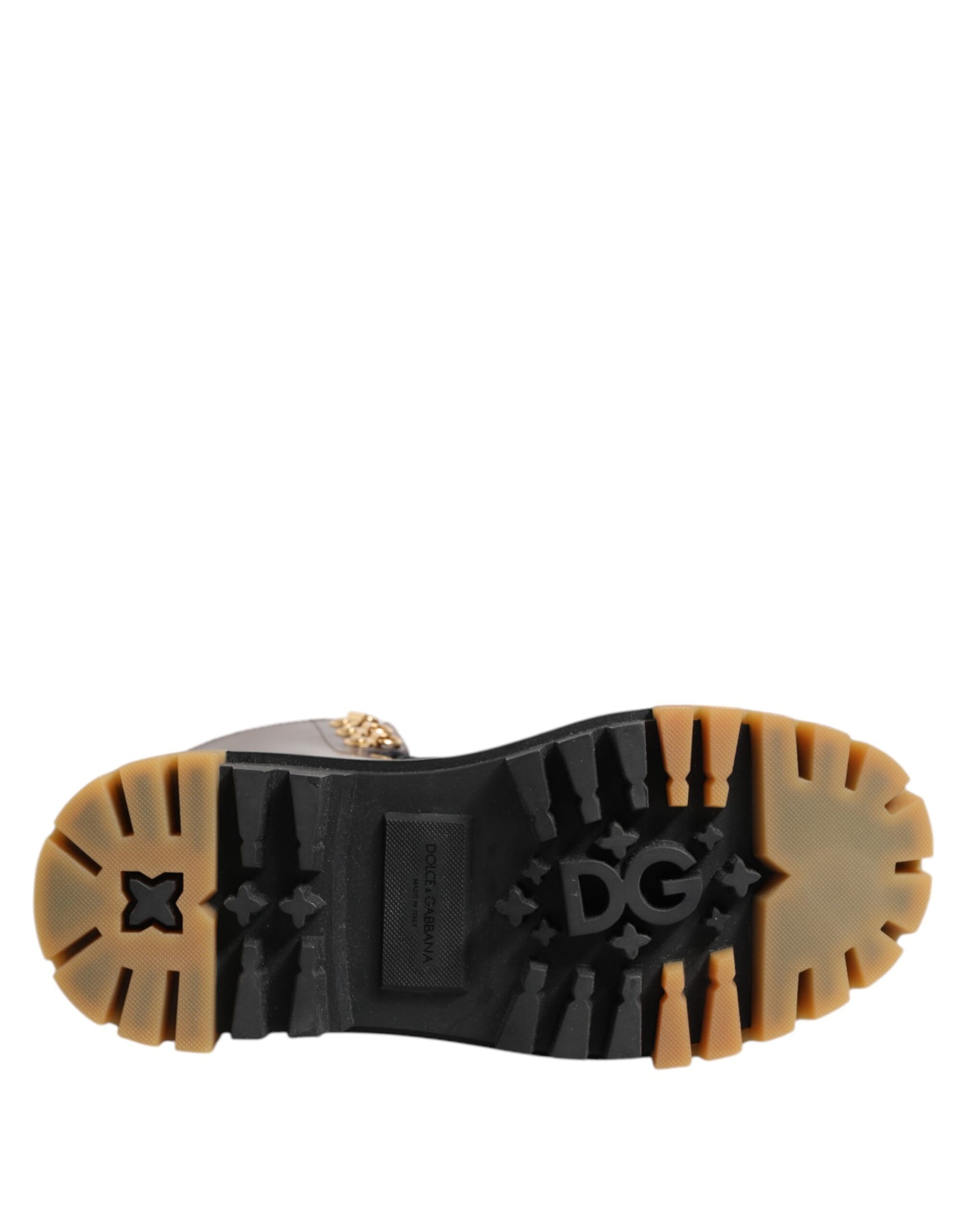 Dolce & Gabbana Braune schwarze Lederstiefel mit Reißverschluss und Schnürschuhen