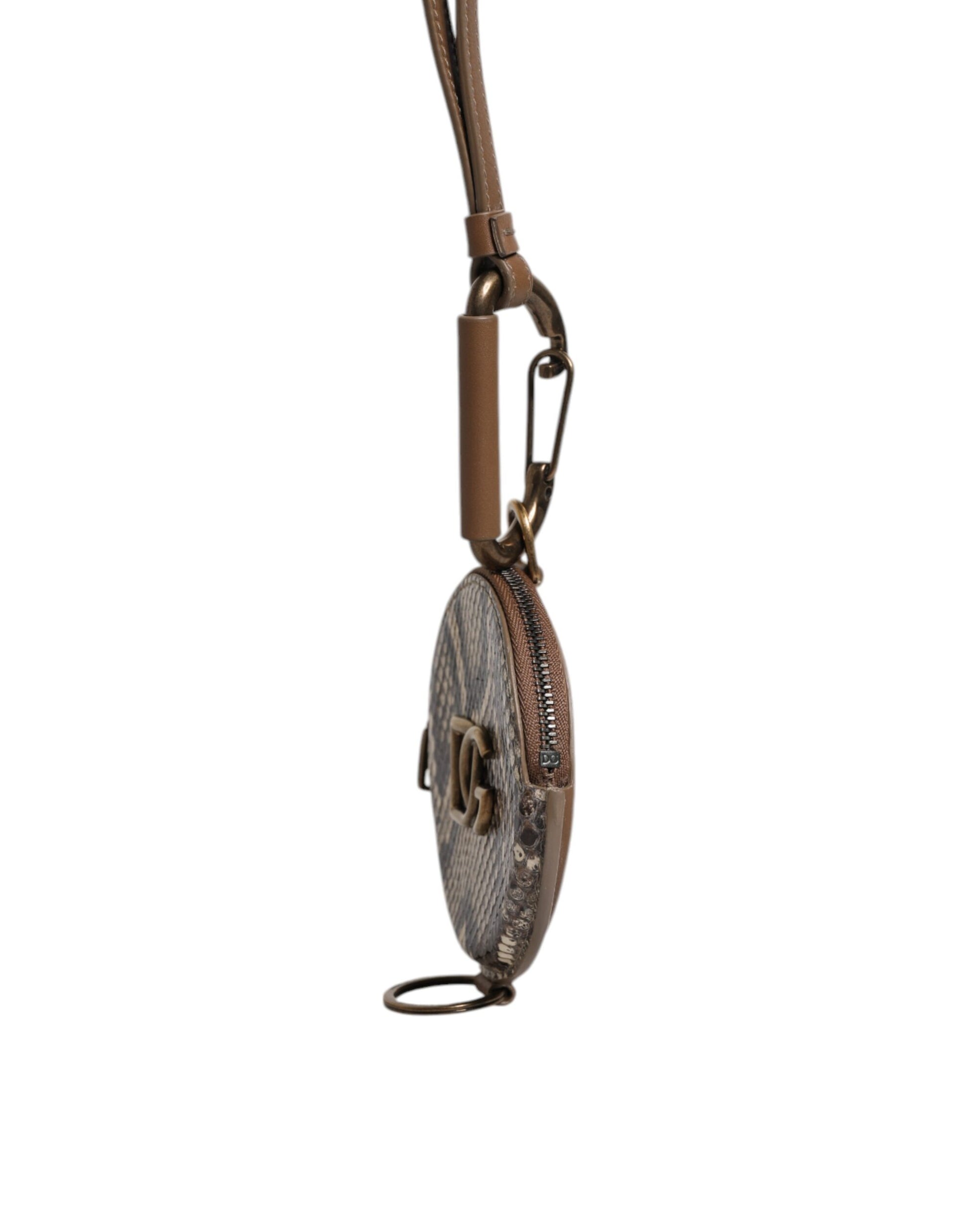 Dolce & Gabbana Braunes rundes Leder-Geldbörse mit DG-Logo und Schlüsselband