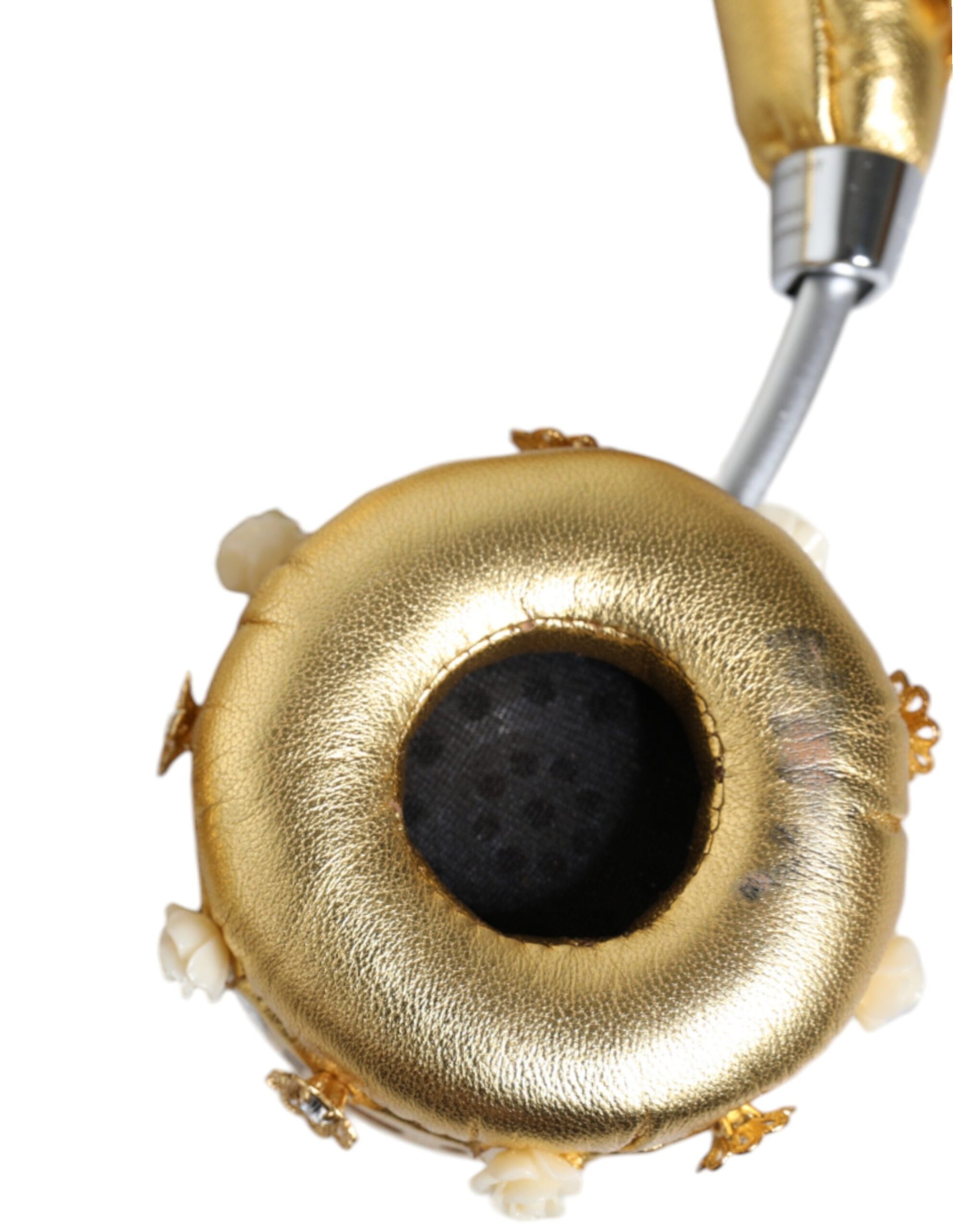Dolce & Gabbana – Engel-Kopfhörer aus goldenem Leder mit Blumenmuster und Kristallen