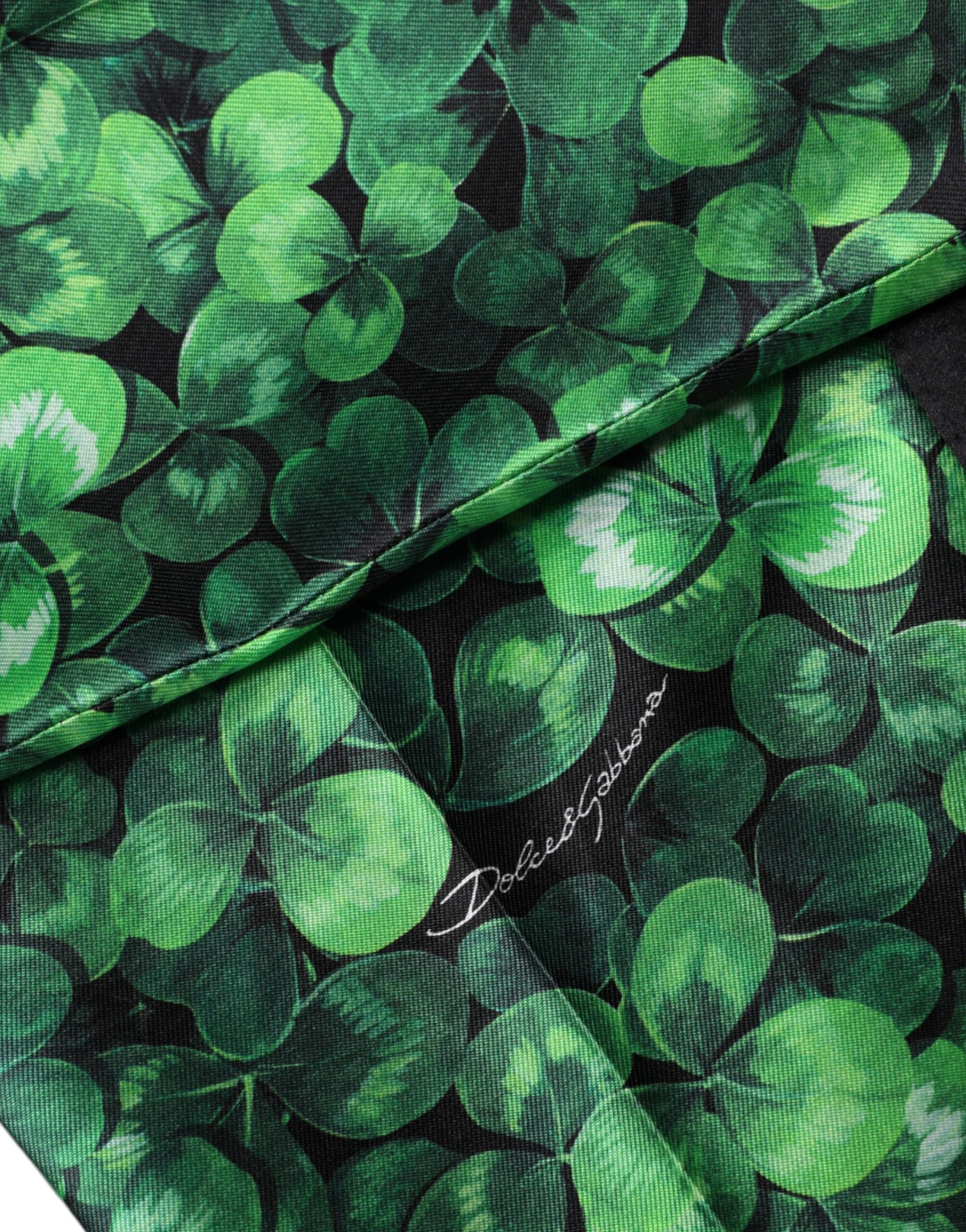 Dolce & Gabbana – Hoch taillierte Karottenhose aus Seidensatin in Grün mit Kleeblatt-Print