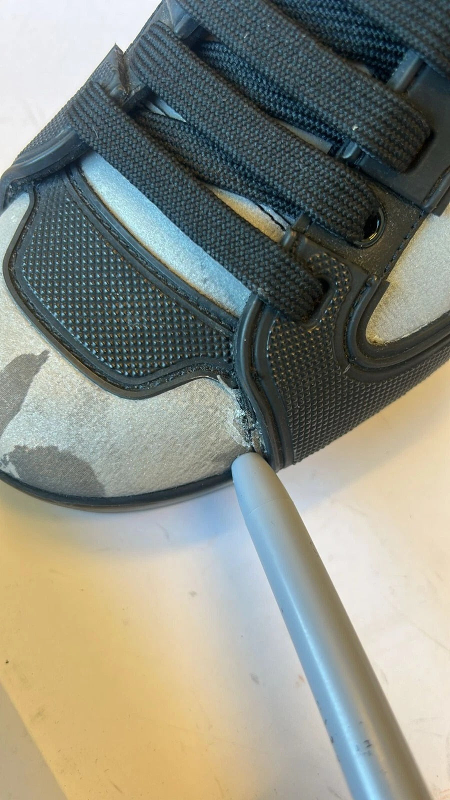 Dieser Artikel wurde als Ausstellungsstück verwendet. Der rechte Schuh weist einen kleinen Riss und einige kleine Kratzer auf (siehe Bilder). Dies ist der Grund für den niedrigen Verkaufspreis und eine tolle Gelegenheit, ein Schnäppchen zu machen.