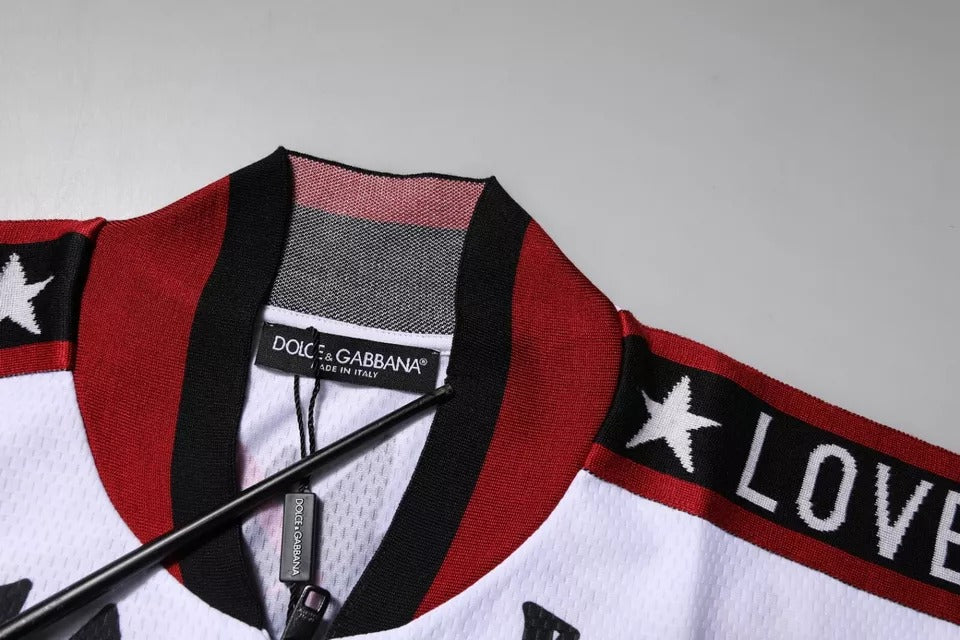 Wunderschönes, brandneues, 100 % authentisches T-Shirt von Dolce & Gabbana. Dieses T-Shirt ist mit einem lebendigen King-Panda-Aufdruck verziert und verfügt über einen einzigartigen Reißverschlusskragen, der Ihre Freizeitkleidung auf ein neues Niveau der Raffinesse hebt.