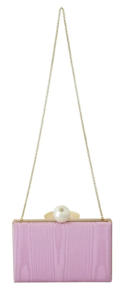Wunderschöne, 100 % authentische Dolce & Gabbana Miniatur-Clutch, rosa Modell, mit dichter Moiré-Seide überzogen. Die Minaudière wird mit einem goldenen Rahmendeckel verschlossen.