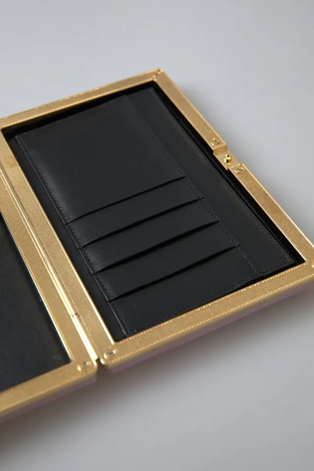 Wunderschöne, 100 % authentische Dolce & Gabbana Miniatur-Clutch, rosa Modell, mit dichter Moiré-Seide überzogen. Die Minaudière wird mit einem goldenen Rahmendeckel verschlossen.
