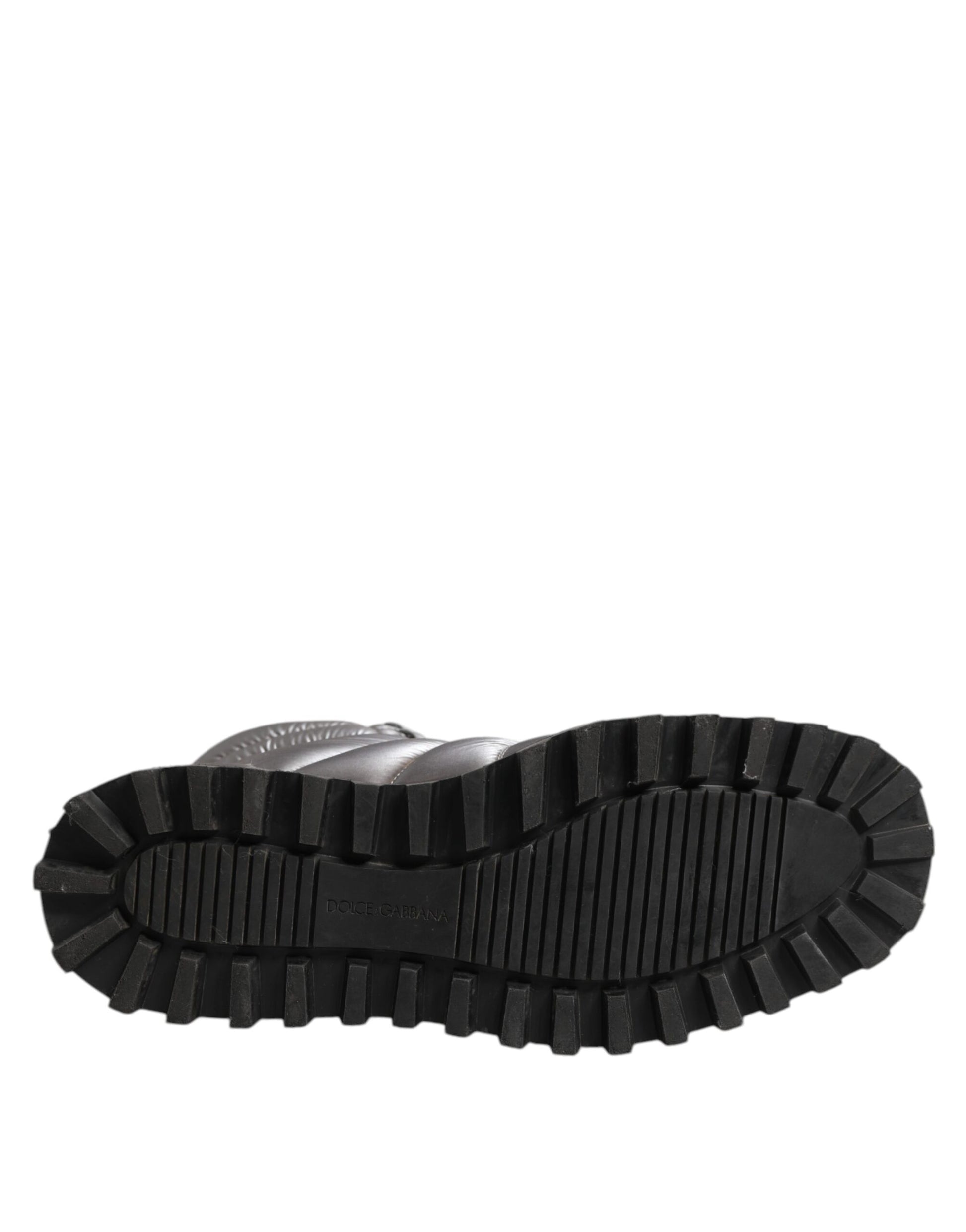 Dolce & Gabbana – Silberne, gepolsterte Stiefel mit Schnürung in der Mitte der Wade