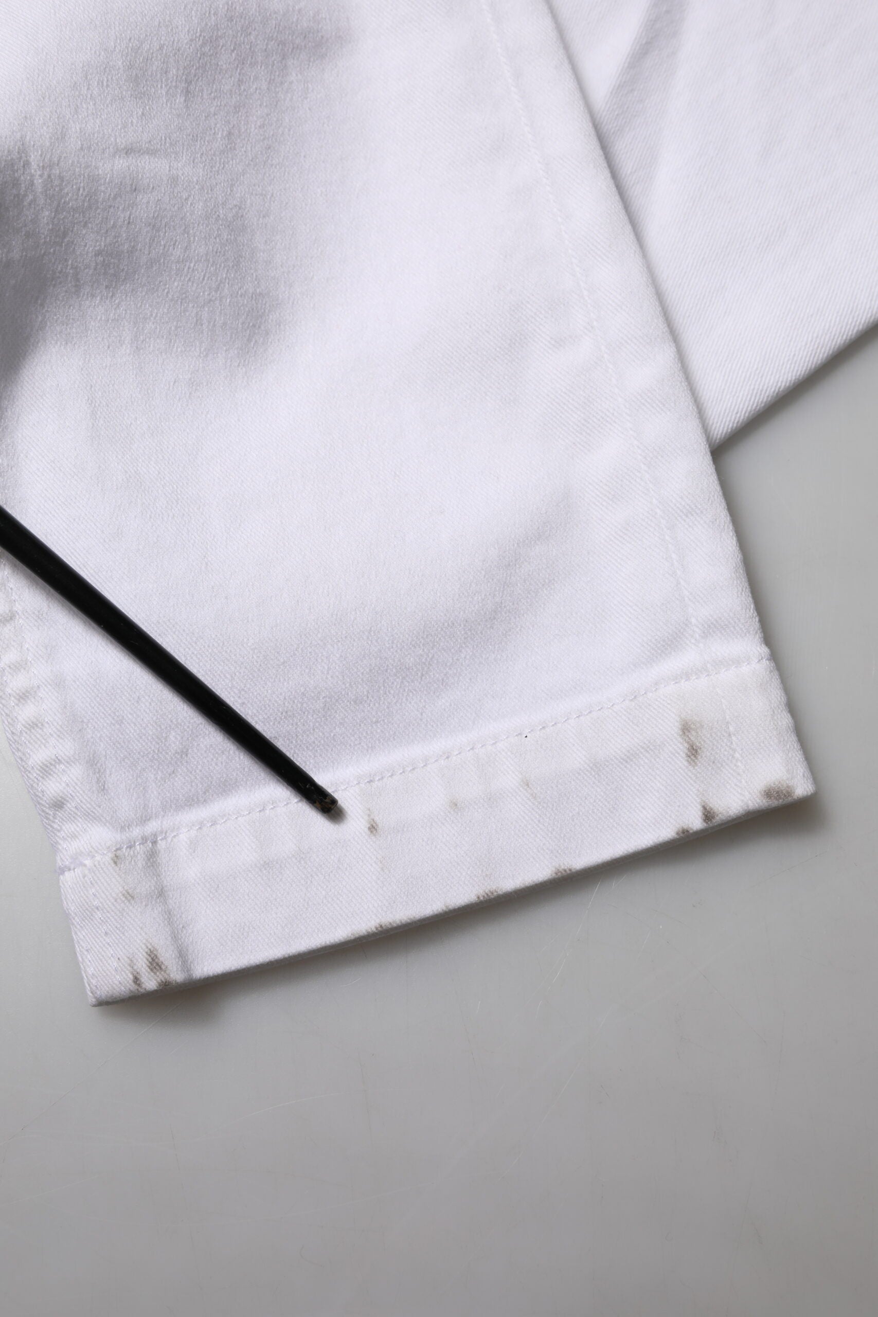 Dieser Artikel weist einen kleinen Mangel auf, es sind Markierungen am unteren Ende der Hose vorhanden (Details siehe Bilder).