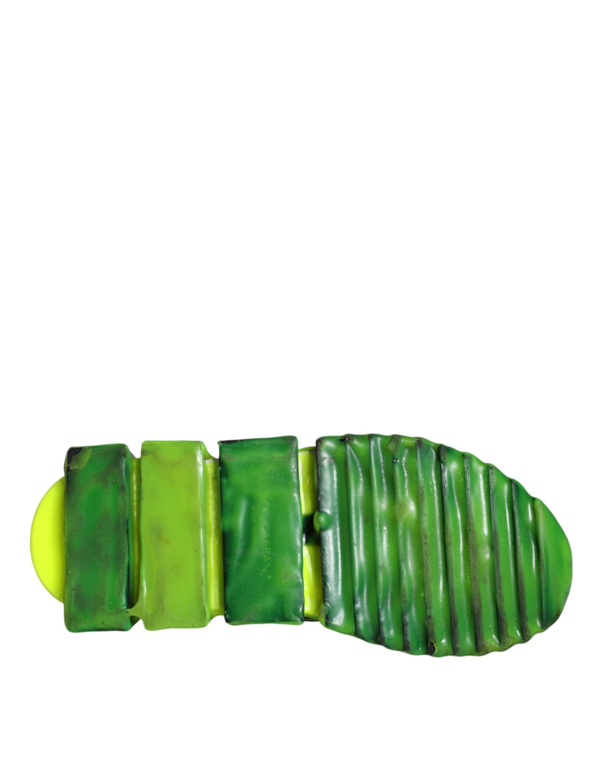 Wunderschöne, 100 % authentische Dolce & Gabbana-Sneaker in Weiß und Gelb „Sorrento“. Verziert mit einem Logo-Print in Weiß und Schwarz. Hinten eingenähter Stoff-Zugriemen. Schwarze dekorative Gummisohle.