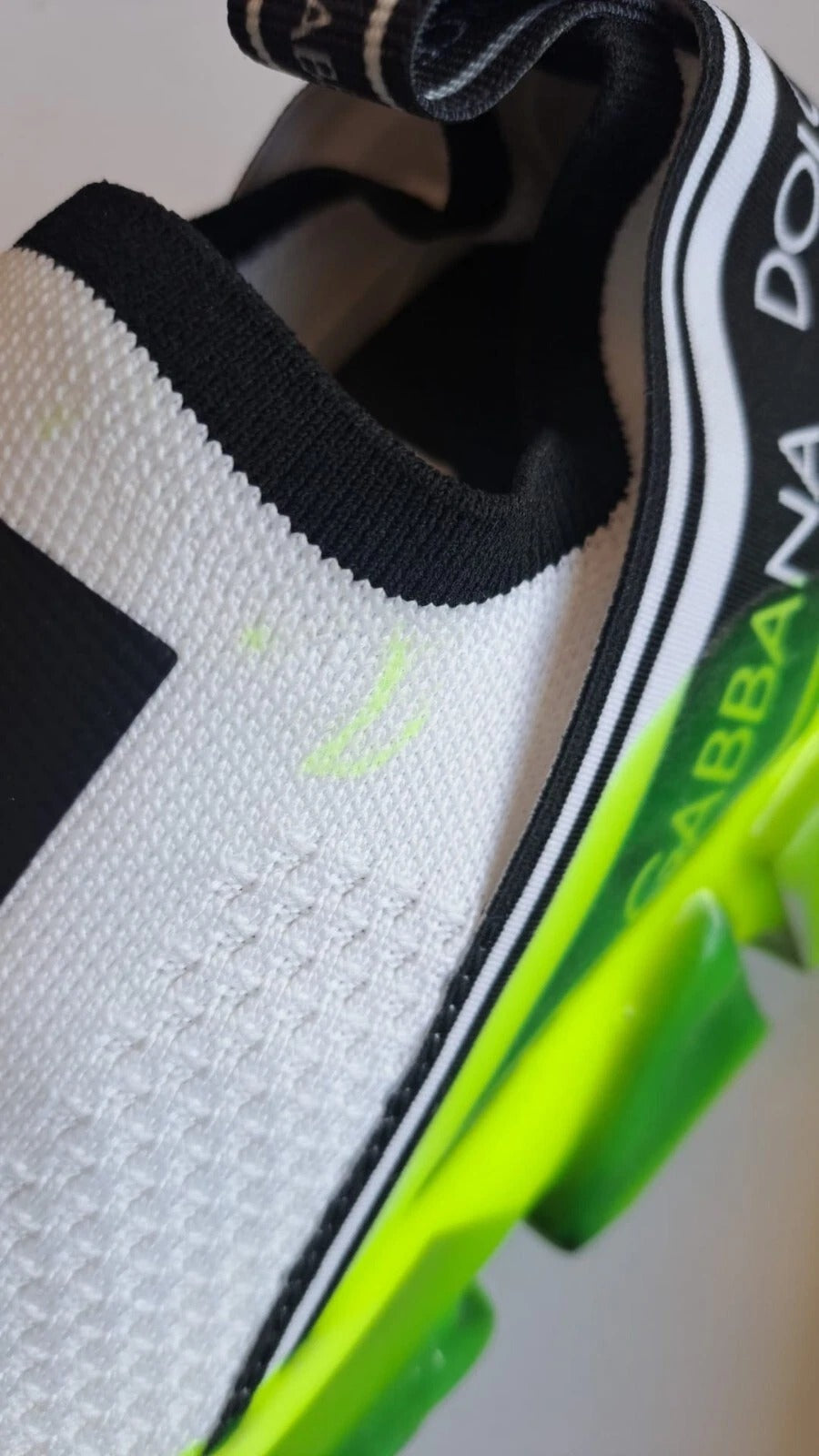 Wunderschöne, brandneue, 100 % authentische Dolce & Gabbana-Sneaker „Sorrento“ in Weiß und Gelb mit Etikett. Verziert mit einem Logo-Print in Weiß und Schwarz. Hinten eingenähter Stoff-Zugriemen. Schwarze dekorative Gummisohle.