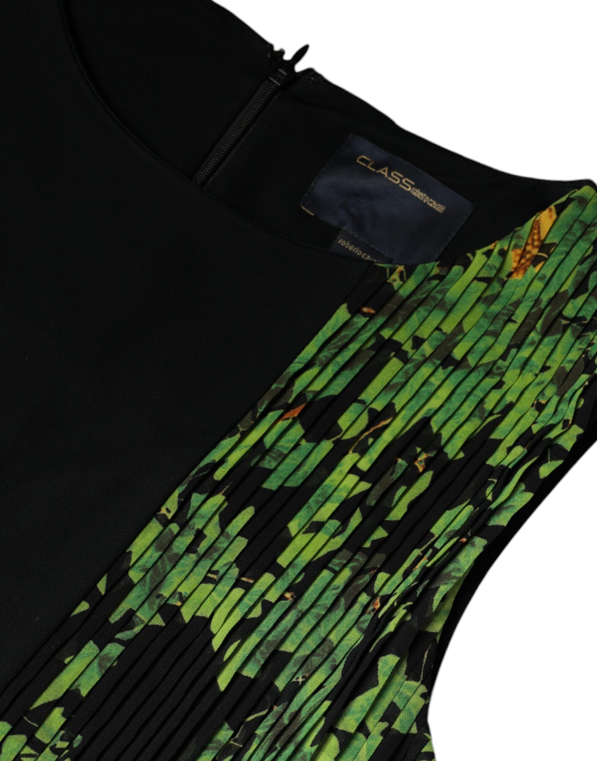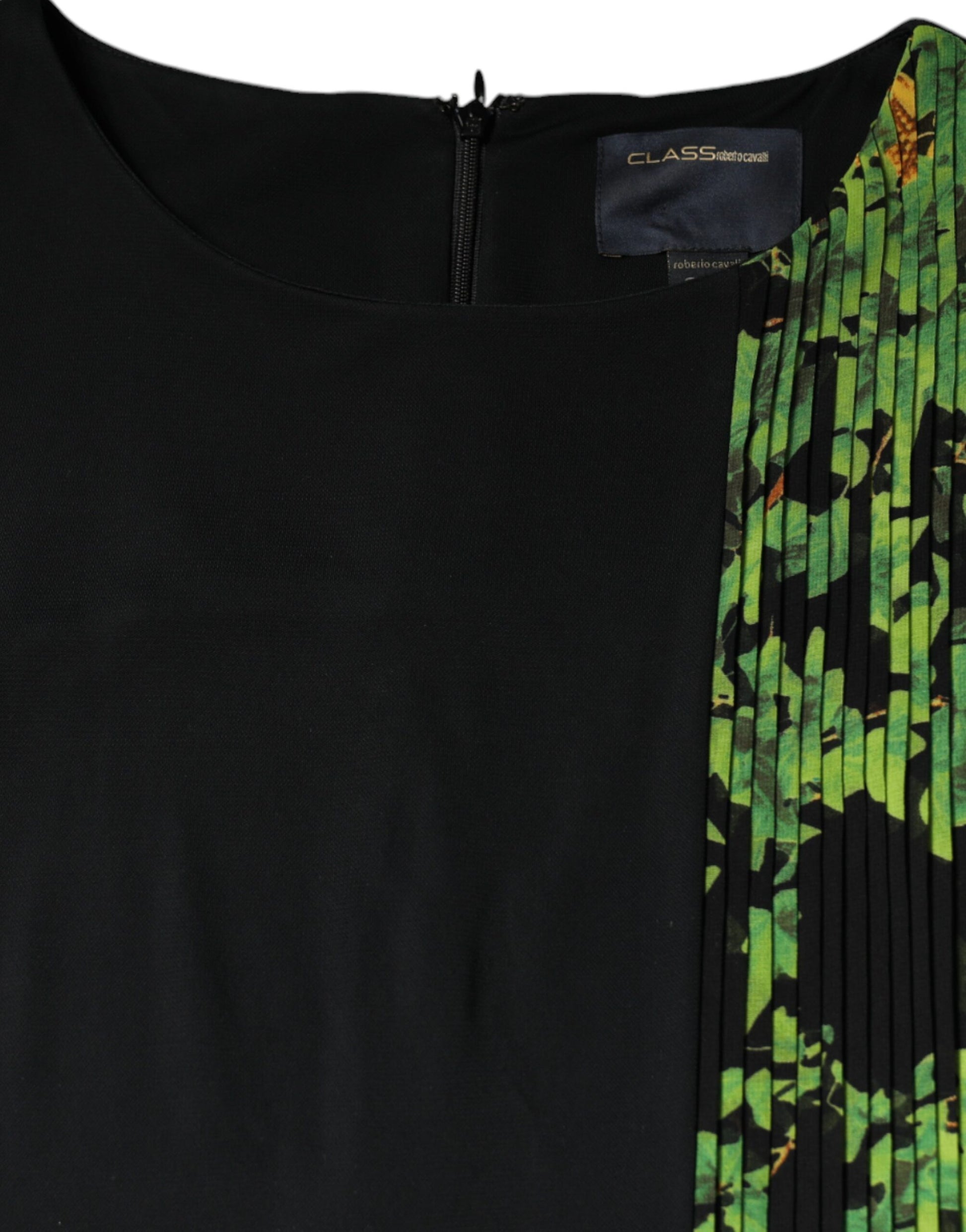 Wunderschönes, 100 % authentisches, geblümtes Etuikleid von CLASS ROBERTO CAVALLI aus Viskose mit Ärmeln und Rundhalsausschnitt.