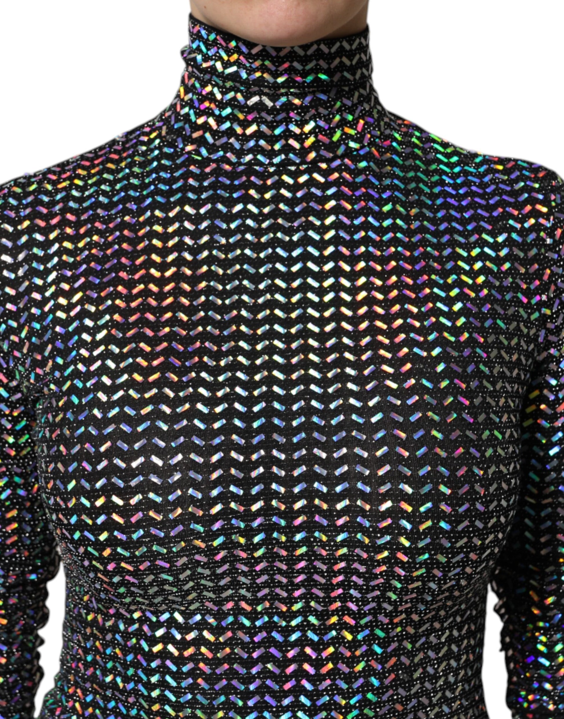 Wunderschönes, brandneues, 100 % authentisches, langärmliges, figurbetontes Minikleid von Dolce & Gabbana. Modell: Mini-Bodycon-Kleid Farbe: Schwarz verziert Material: 94 % Nylon, 6 % Elasthan Reißverschluss Logodetails Hergestellt in Italien Sehr exklusiv und hochwertig verarbeitet