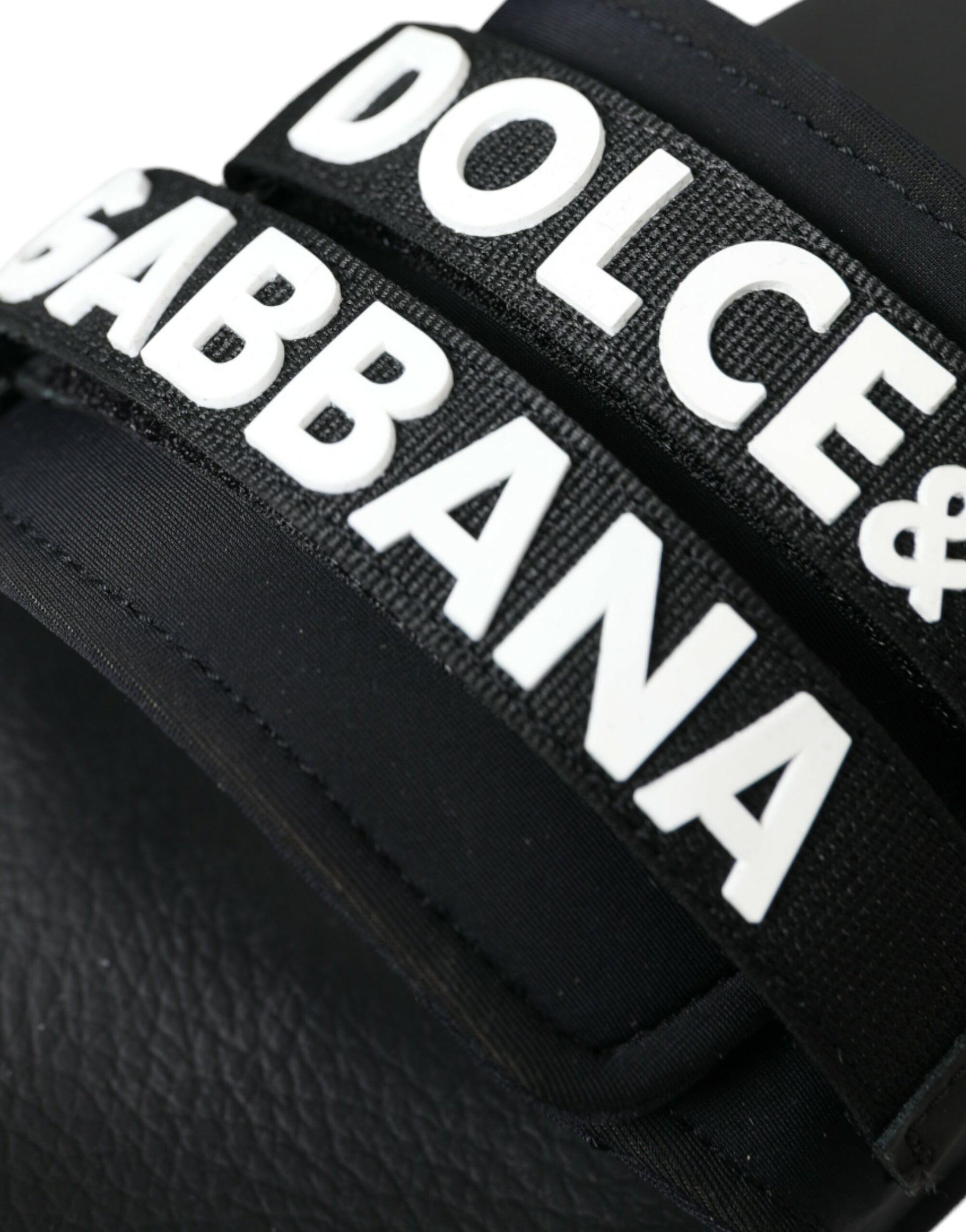 Wunderschöne, brandneue, 100 % authentische Dolce & Gabbana-Strandschuhe mit Logo und Etikett aus Nylonmischung. Modell: Slide Flats Material: 60 % Nylon, 20 % PU, 15 % Polyester, 5 % Elastan Farbe: Schwarz, Weiß Gummisohle Logodetails Hergestellt in Italien Sehr hohe Qualität und Komfort