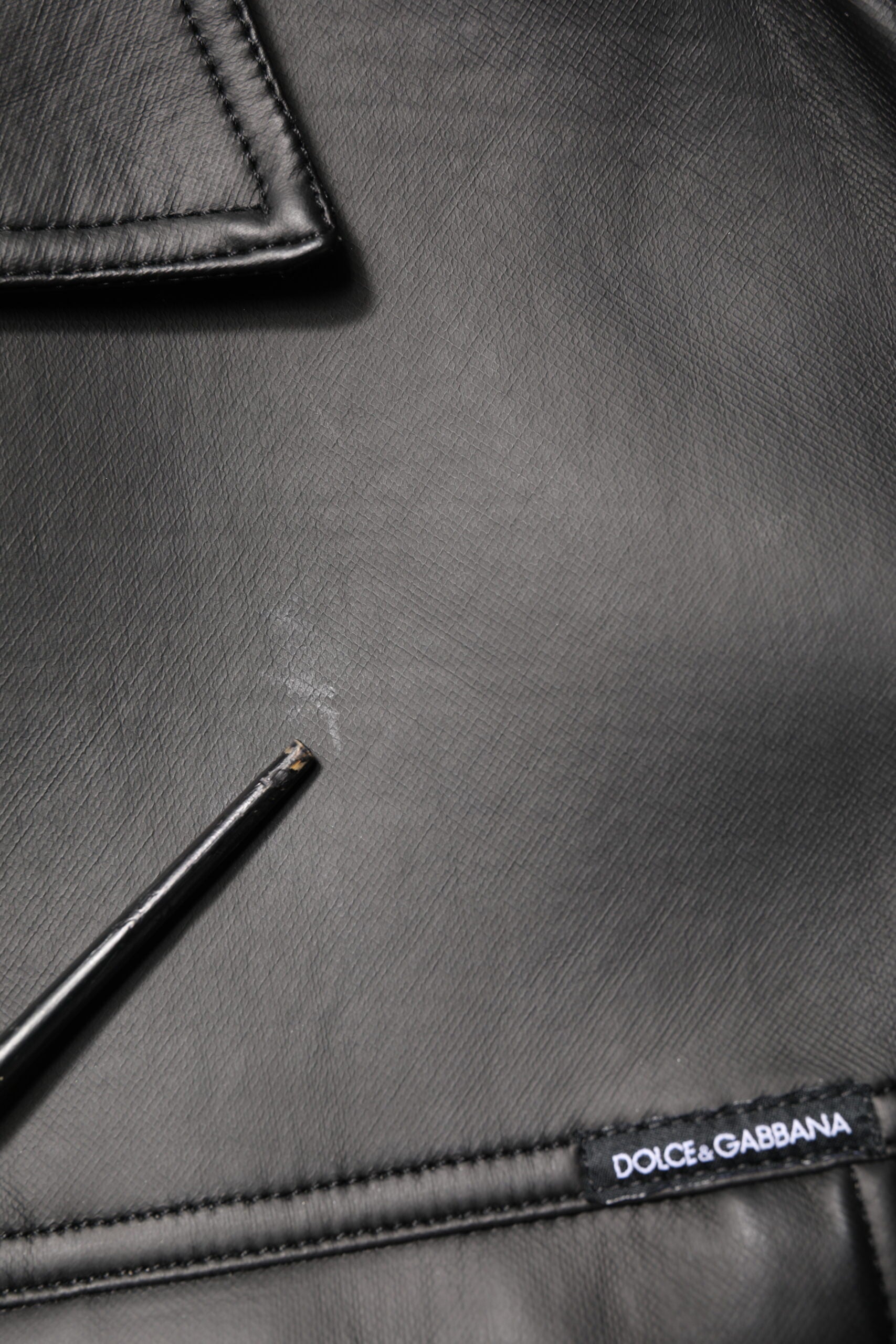 Dolce & Gabbana – Schwarze Bikerjacke aus Polyester mit Knopfleiste