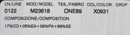 Material: 17 % Baumwolle, 69 % Seide, 5 % Elasthan, 9 % Polyamid