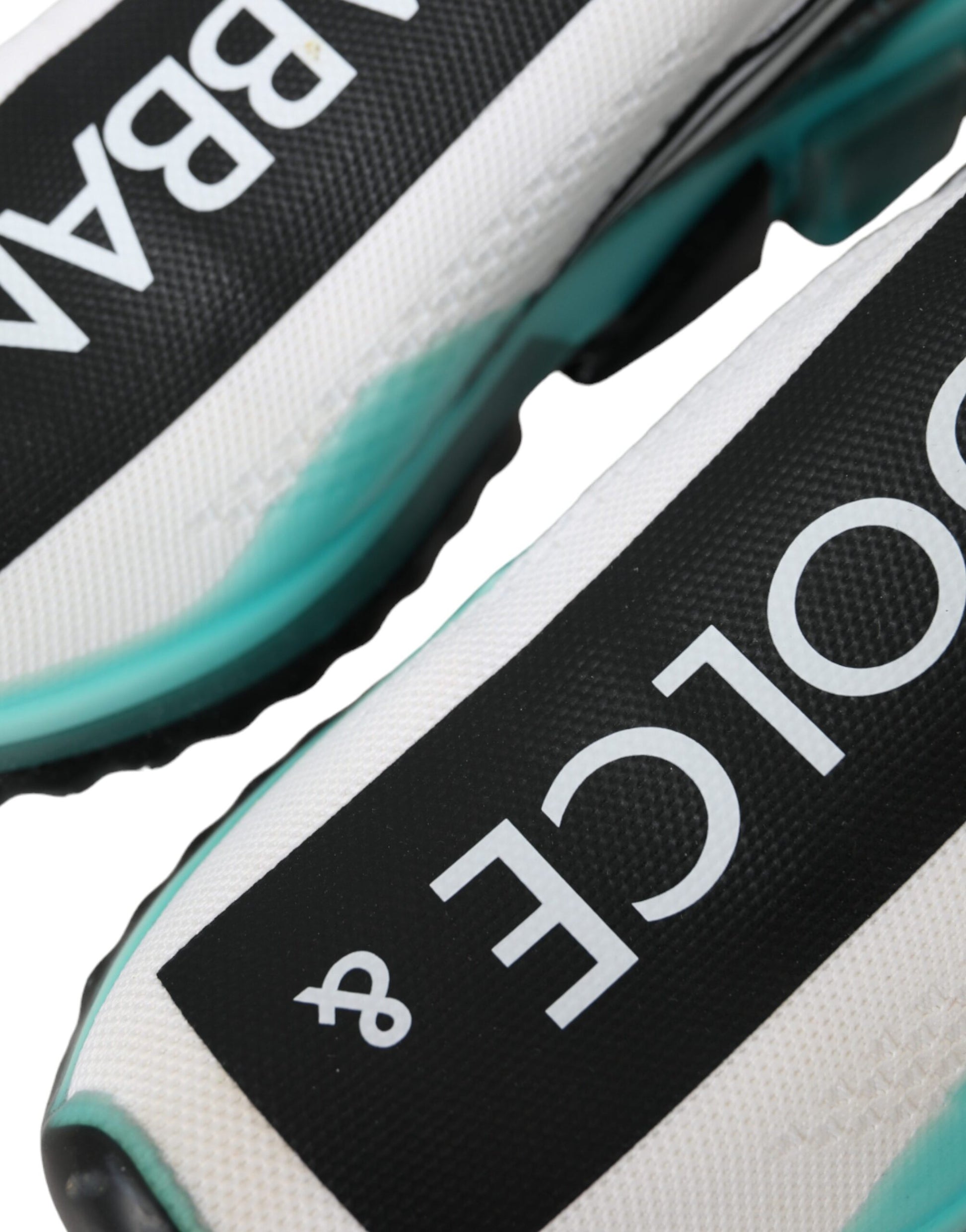 Wunderschöne, brandneue, 100 % authentische Dolce & Gabbana-Sneaker „Sorrento“ in Weiß und Schwarz mit Etikett. Verziert mit einem Logo-Print in Weiß und Schwarz. Hinten eingenähter Stoff-Zugriemen. Schwarze dekorative Gummisohle.