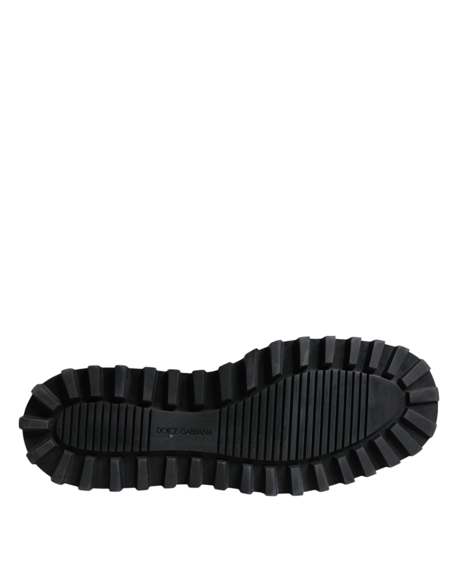 Absolut umwerfende, 100 % authentische, gepolsterte Plateaustiefel von Dolce & Gabbana mit halbhoher Wadenhöhe und metallenem DG-Logoschild in Bronze.