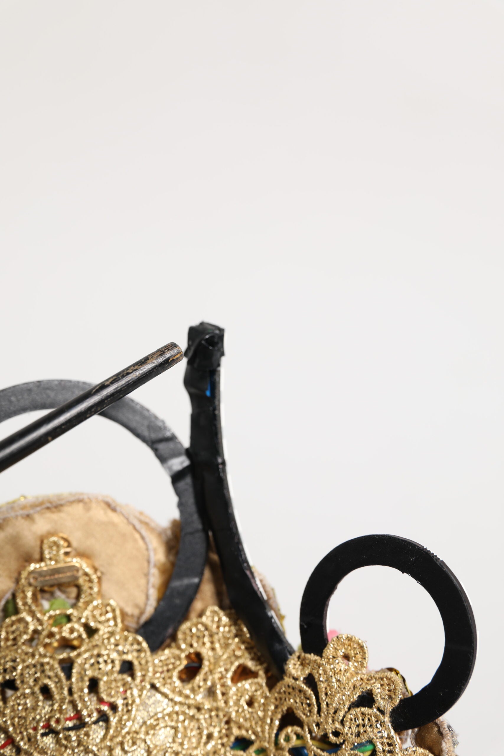Diese opulente Krone wurde in Italien auf exquisite Weise gefertigt und ist mit mehrfarbigen Kristallen, floralen Applikationen und goldenen Stickereien verziert. Sie ist ein atemberaubendes Stück, das sich perfekt für Couture-Styling, besondere Anlässe oder als Sammlerstück eignet.