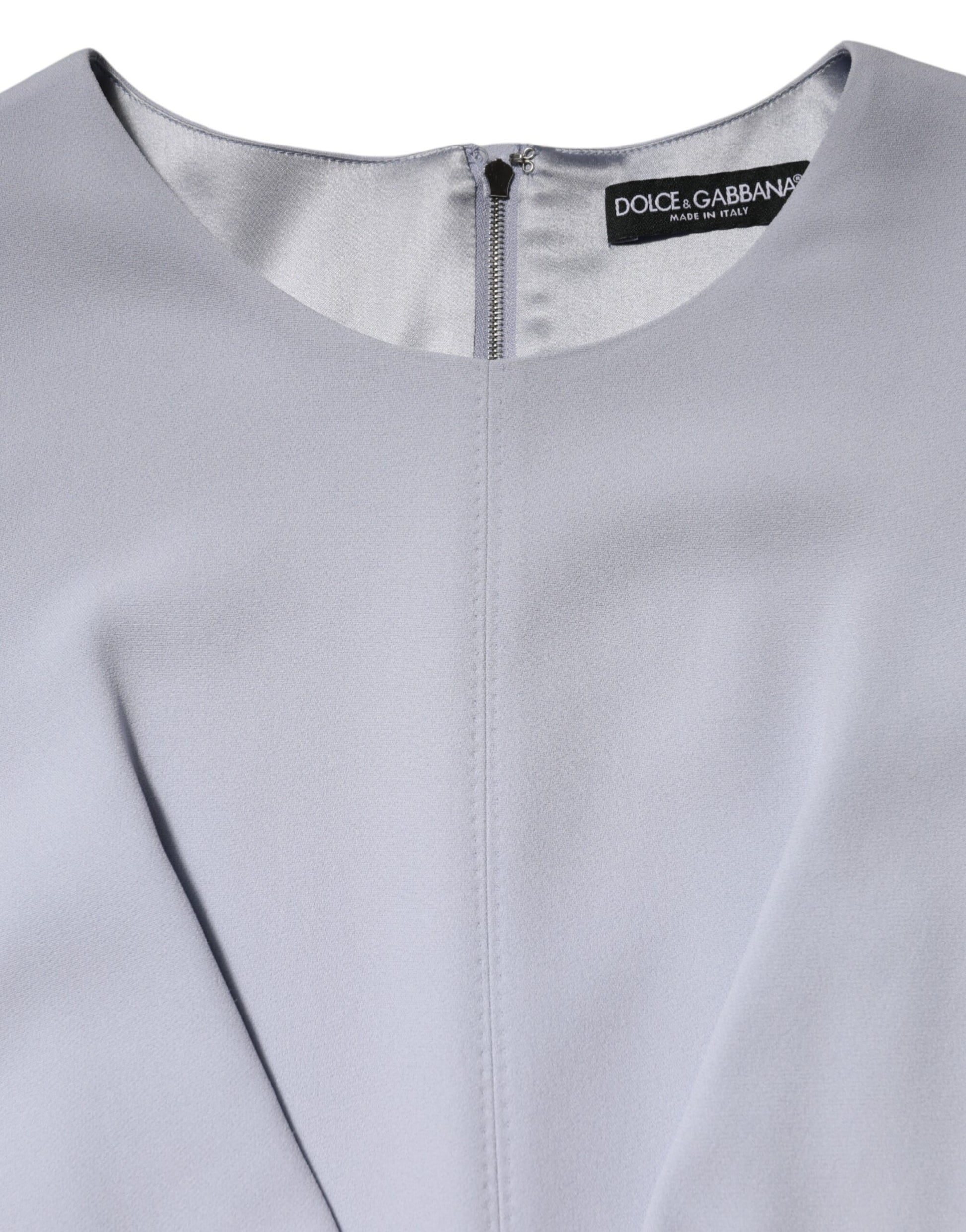 Wunderschönes, brandneues, 100 % authentisches, hellblaues Midikleid von Dolce & Gabbana mit Etikett. Dieses elegante Kleid hat kurze Ärmel, einen runden Ausschnitt und eine auffällige Blumenapplikation an der Taille. Hergestellt aus einer weichen Viskosemischung mit Seidenfutter für ein edles Finish. Perfekt für formelle Anlässe oder besondere Anlässe.