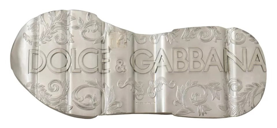 Wunderschöner, brandneuer, 100 % authentischer Ledersneaker von Dolce & Gabbana mit Etikett, einer klobigen goldenen Sohle und einem glänzenden Absatz mit dem Logo der Marke.